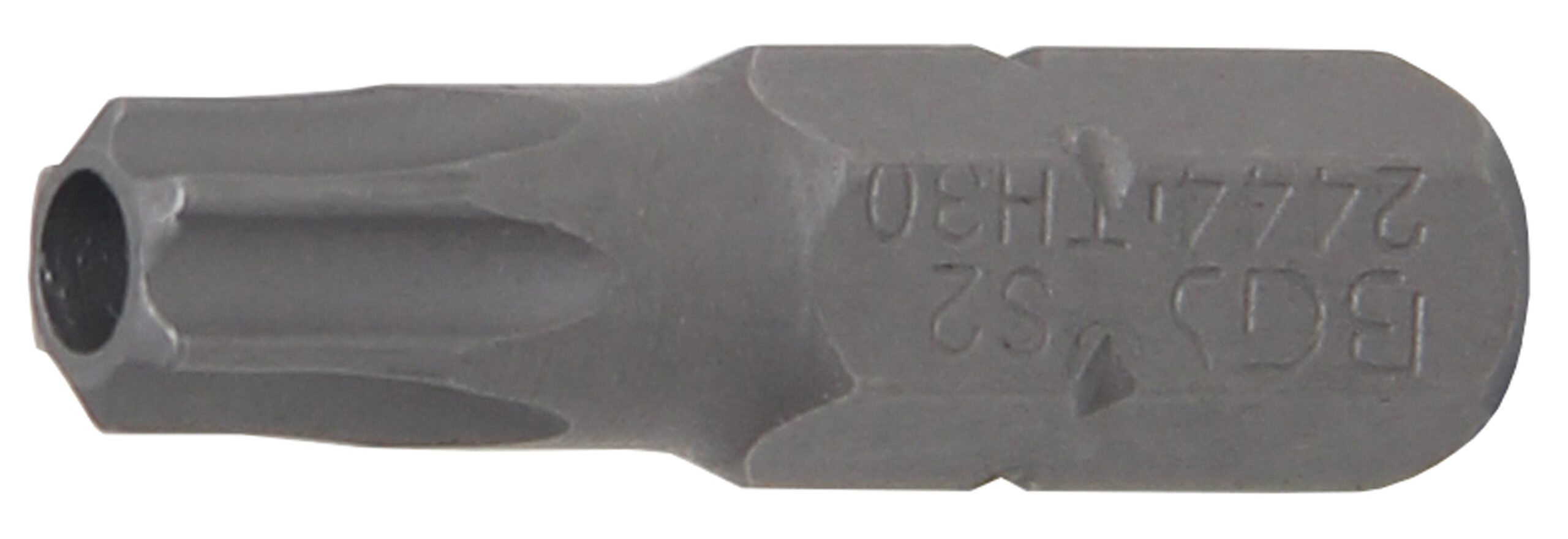 Technische Daten Material Chrom-Vanadium-Stahl S2 Abtriebsprofilgröße T30 Antriebsprofilgröße metrisch 63 mm Länge 25 mm Bruttogewicht 10 g Antriebsprofilgröße imperial 14 Antriebsprofil Außensechskant Abtriebsprofil T-Profil für Torx mit Bohrung
