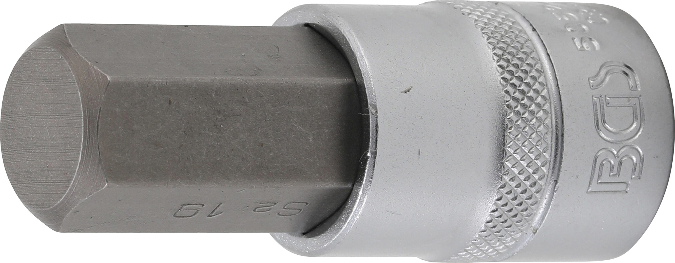 mit Rändelung Technische Daten Abtriebsprofilgröße 19 mm Oberflächenvergütung Verchromt matt Verpackung für Wandbehang geeignet Ja Antriebsprofilgröße metrisch 125 mm Antriebsprofilgröße imperial 12 Bruttogewicht 220 g Abtriebsprofil Innensechskant Material Chrom-Vanadium-Stahl Antriebsprofil Innenvierkant