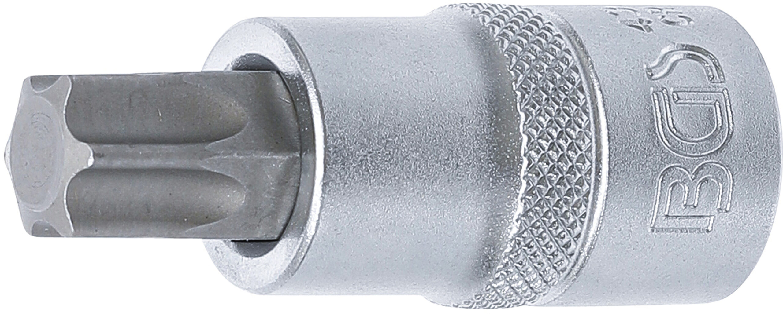 mit Rändelung Technische Daten Antriebsprofilgröße metrisch 125 mm Abtriebsprofilgröße T60 Oberflächenvergütung Verchromt matt Länge 53 mm Antriebsprofilgröße imperial 12 Material Chrom-Vanadium-Stahl Bruttogewicht 100 g Antriebsprofil Innenvierkant Abtriebsprofil T-Profil für Torx