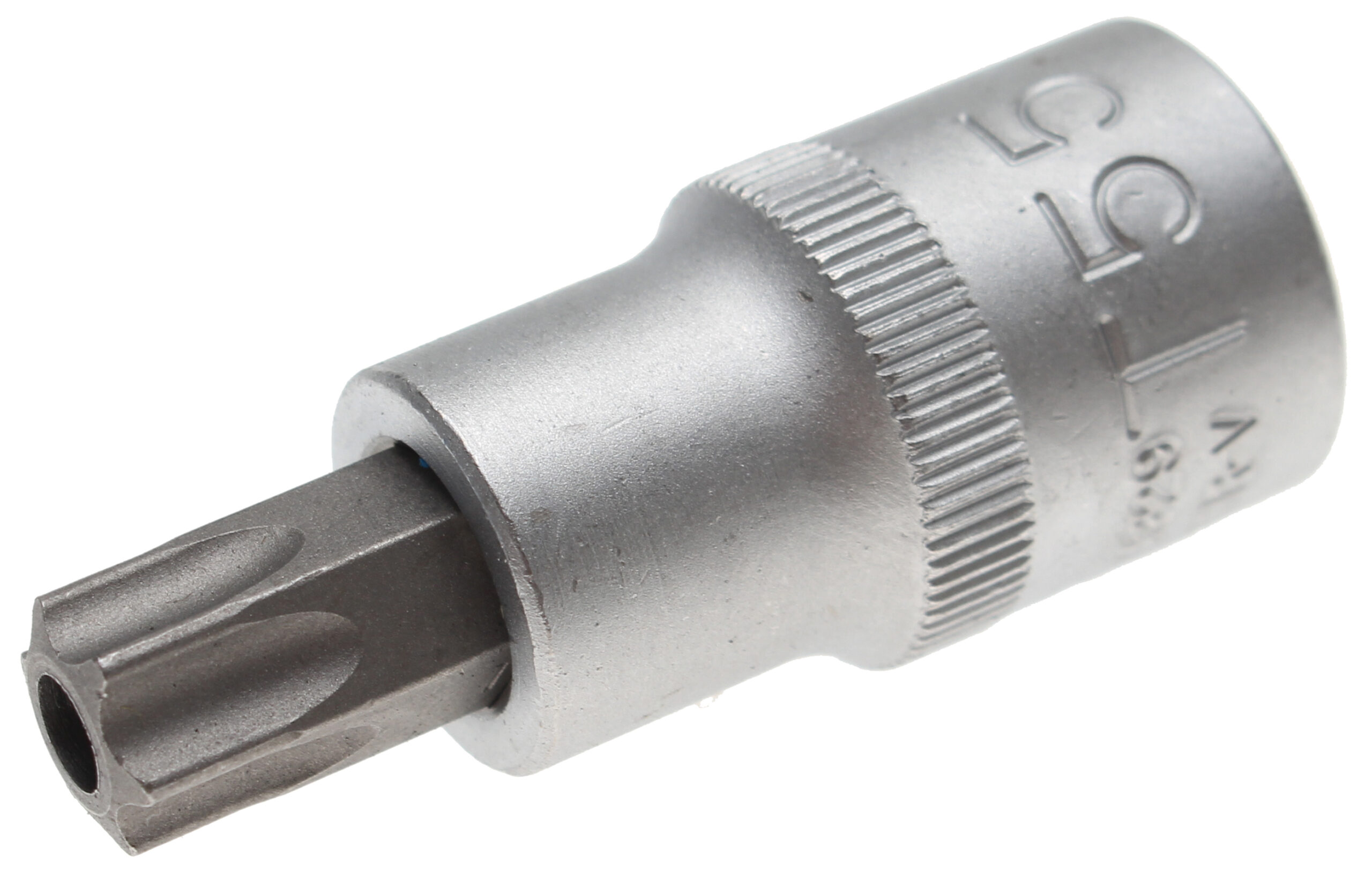 mit Rändelung Technische Daten Material Chrom-Vanadium-Stahl Antriebsprofilgröße imperial 12 Oberflächenvergütung Verchromt matt Abtriebsprofilgröße T55 Abtriebsprofil T-Profil für Torx mit Bohrung Antriebsprofil Innenvierkant Bruttogewicht 80 g Verpackung für Wandbehang geeignet Ja Antriebsprofilgröße metrisch 125 mm Länge 53 mm