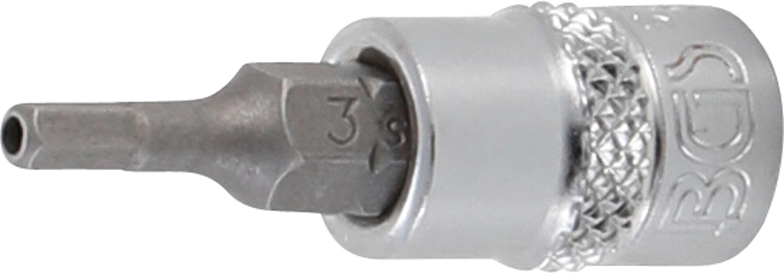 mit Rändelung Technische Daten Antriebsprofilgröße imperial 14 Abtriebsprofilgröße 3 mm Verpackung für Wandbehang geeignet Ja Länge 38 mm Antriebsprofilgröße metrisch 63 mm Material Chrom-Vanadium-Stahl Antriebsprofil Innenvierkant Abtriebsprofil Innensechskant mit Bohrung Bruttogewicht 20 g Oberflächenvergütung Verchromt matt
