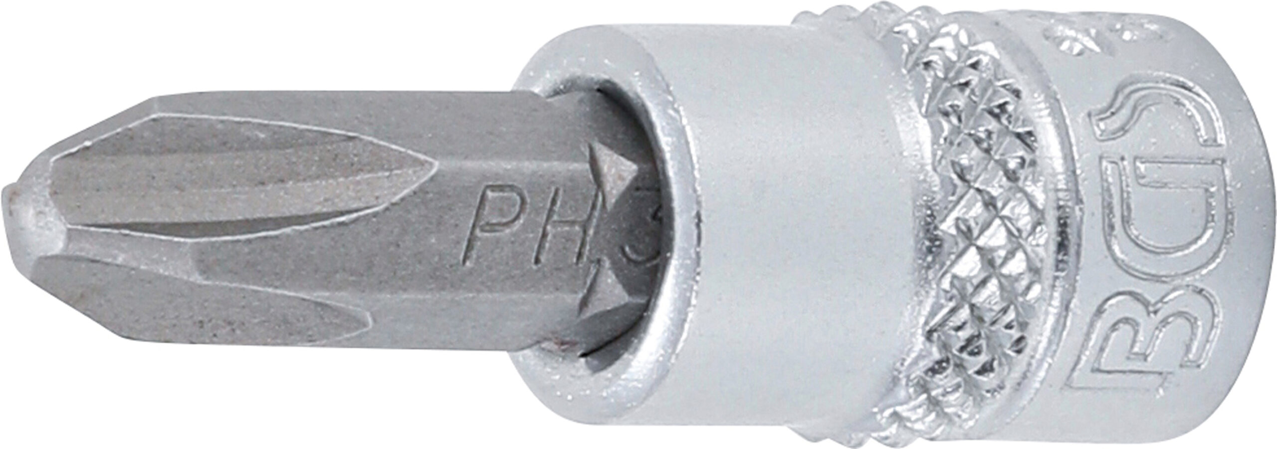 mit Rändelung Technische Daten Antriebsprofilgröße metrisch 63 mm Abtriebsprofil Kreuzschlitz PH Antriebsprofilgröße imperial 14 Länge 38 mm Oberflächenvergütung Verchromt matt Material Chrom-Vanadium-Stahl Antriebsprofil Innenvierkant Bruttogewicht 20 g Abtriebsprofilgröße PH3