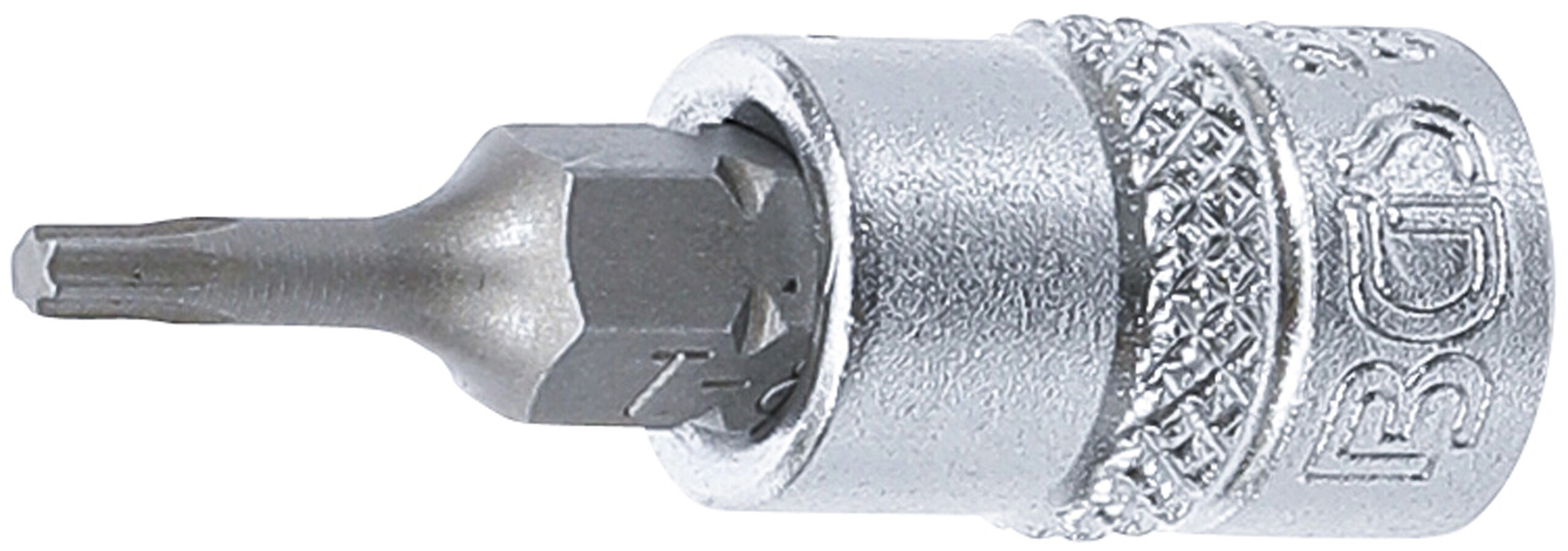 mit Rändelung Technische Daten Antriebsprofil Innenvierkant Bruttogewicht 20 g Antriebsprofilgröße metrisch 63 mm Antriebsprofilgröße imperial 14 Abtriebsprofil T-Profil für Torx Abtriebsprofilgröße T8 Länge 38 mm Material Chrom-Vanadium-Stahl