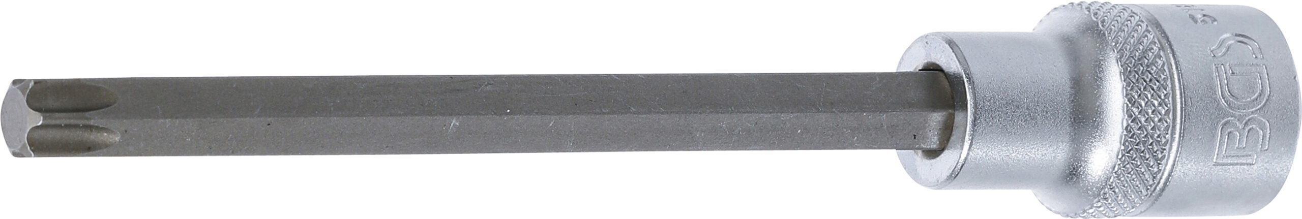mit Rändelung Technische Daten Oberflächenvergütung Verchromt matt Antriebsprofil Innenvierkant Abtriebsprofilgröße T50 Länge 140 mm Material Chrom-Vanadium-Stahl Antriebsprofilgröße metrisch 125 mm Bruttogewicht 112 g Antriebsprofilgröße imperial 12 Abtriebsprofil T-Profil für Torx
