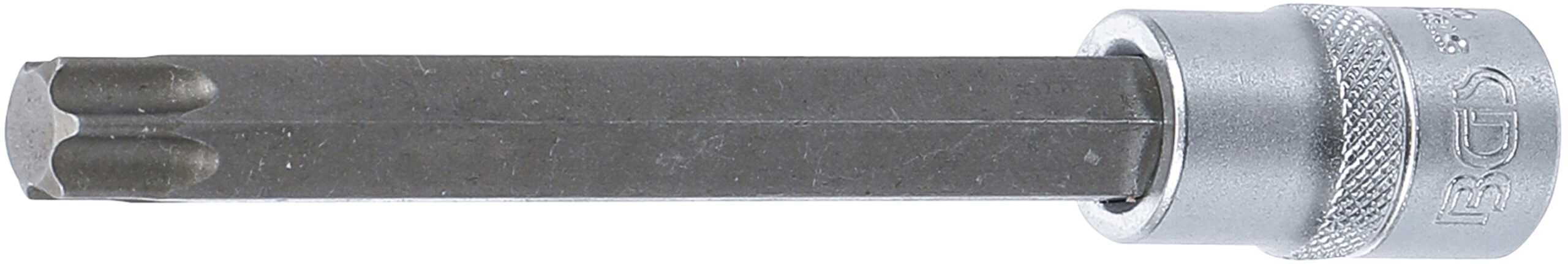 mit Rändelung Technische Daten Oberflächenvergütung Verchromt matt Bruttogewicht 180 g Antriebsprofilgröße metrisch 125 mm Antriebsprofilgröße imperial 12 Länge 140 mm Antriebsprofil Innenvierkant Abtriebsprofil T-Profil für Torx Material Chrom-Vanadium-Stahl Abtriebsprofilgröße T60