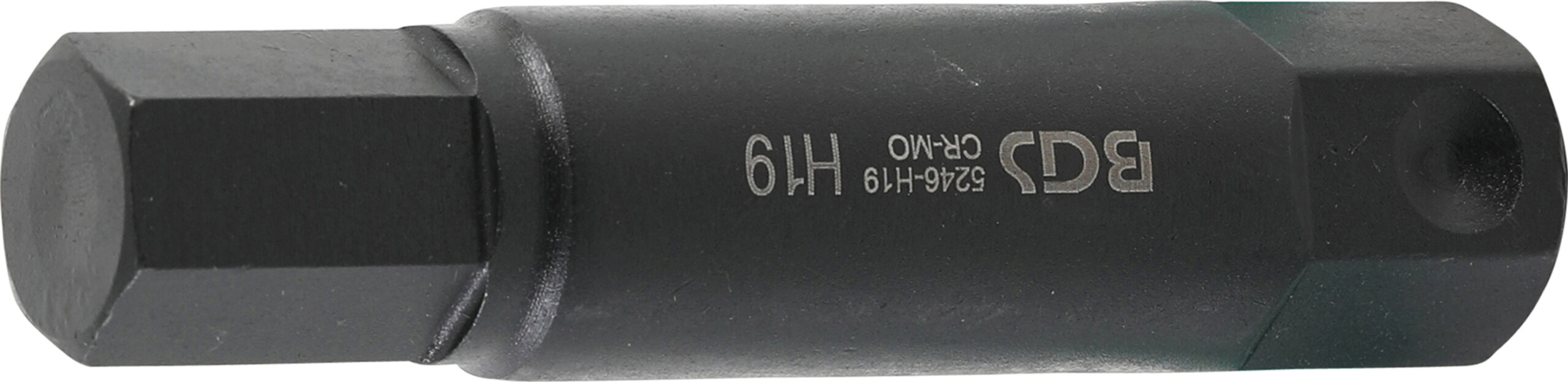 geeignet für Hand- und Schlagschrauberbetrieb Technische Daten Abtriebsprofil Innensechskant Oberflächenvergütung Brüniert schwarz Länge 100 mm Bruttogewicht 350 g Abtriebsprofilgröße 19 mm Antriebsprofilgröße metrisch 22 mm Antriebsprofil Außensechskant Material Chrom-Molybdän-Stahl