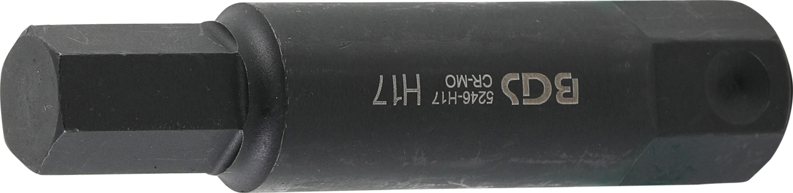 geeignet für Hand- und Schlagschrauberbetrieb Technische Daten Oberflächenvergütung Brüniert schwarz Länge 100 mm Abtriebsprofilgröße 17 mm Material Chrom-Molybdän-Stahl Antriebsprofil Außensechskant Abtriebsprofil Innensechskant Antriebsprofilgröße metrisch 22 mm Bruttogewicht 340 g