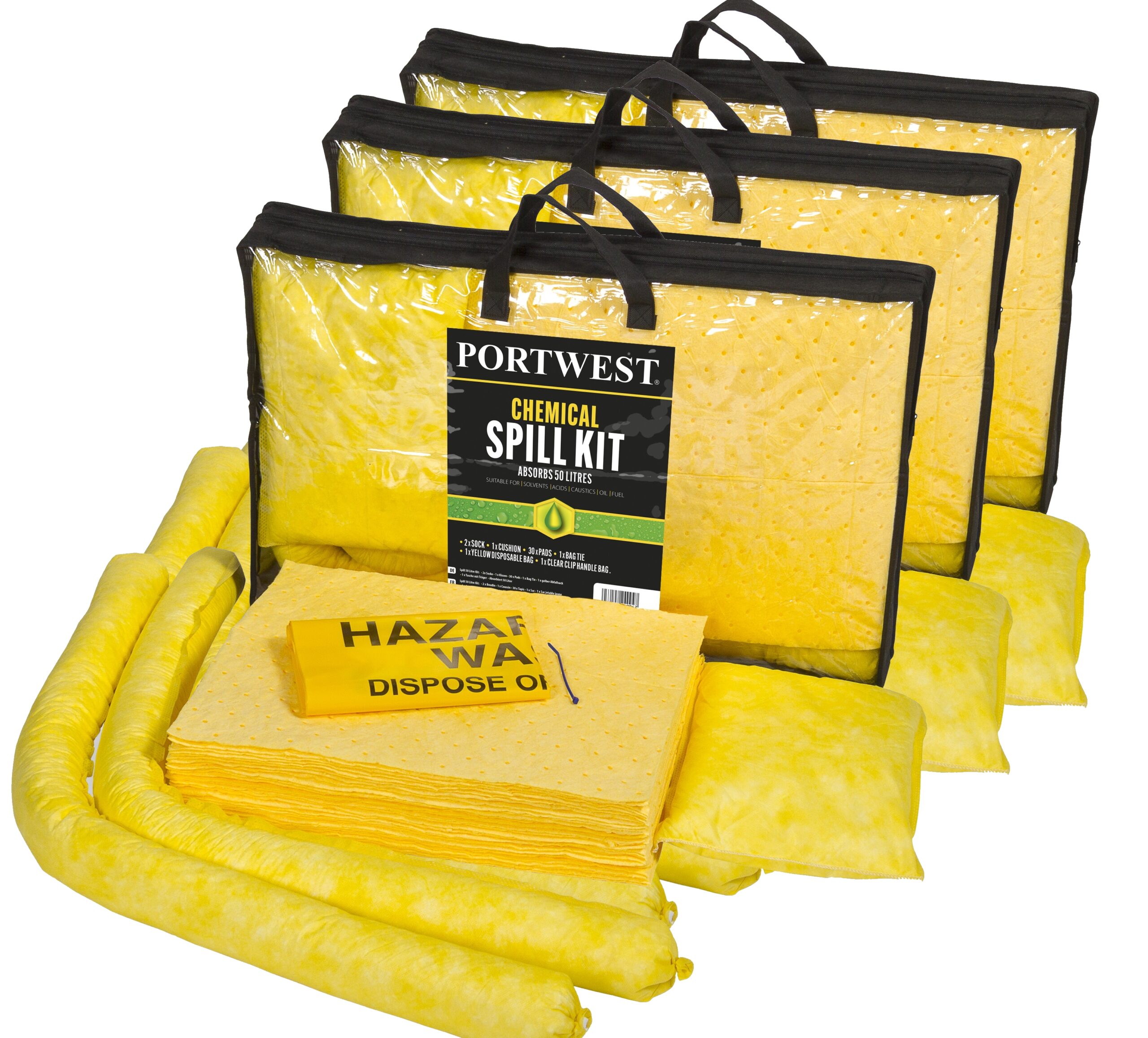 Achtung Vor der Bestellung bitte die Verfügbarkeit bei uns erfragen Dieses Set kann in Außen- und Innenumgebungen eingesetzt werden. Die verstärkte Ausführung von Pads und Socks erlaubt die Speicherung schädlicher Substanzen wie Säuren und Lösungsmittel. Die richtige Wahl bei aggressiven oder unbekannten Chemikalien. Normen BS 7959-1 BS 7959-3 Das Set enthält 6 x Schläuche 3 x Kissen 90 x Pads 3 x gelber Abfallsack mit Warnhinweis Kordel zum Verschließen des Sacks 3 x Tasche…