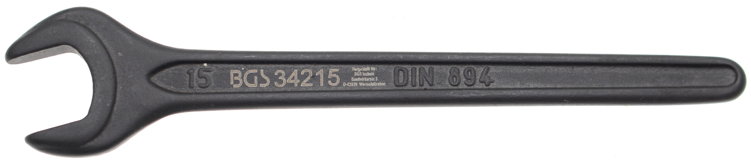 Industrie-Maulschlüssel für besonders schwere Montagen mit langem Schaft für tiefliegende Verschraubungen und hohe Drehmomente sicherer Griff durch Profilschaft warm geschmiedet Technische Daten Bruttogewicht 40 g Kopfbreite 295 mm Oberflächenvergütung Phosphatiert Verpackung für Wandbehang geeignet Nein Schlüsselweite 15 mm Maulstellung 15 Kopfstärke 53 mm DIN 894 Material Werkzeugstahl C45 Länge 140 mm