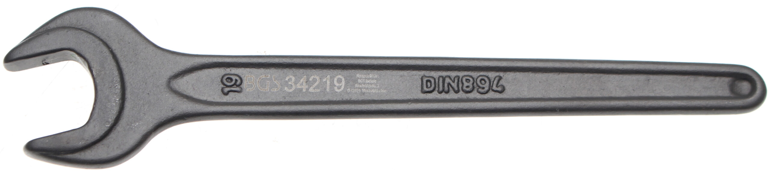 Industrie-Maulschlüssel für besonders schwere Montagen mit langem Schaft für tiefliegende Verschraubungen und hohe Drehmomente sicherer Griff durch Profilschaft warm geschmiedet Technische Daten DIN 894 Verpackung für Wandbehang geeignet Nein Länge 170 mm Kopfstärke 69 mm Maulstellung 15 Kopfbreite 39 mm Schlüsselweite 19 mm Material Werkzeugstahl C45 Oberflächenvergütung Phosphatiert Bruttogewicht 80 g