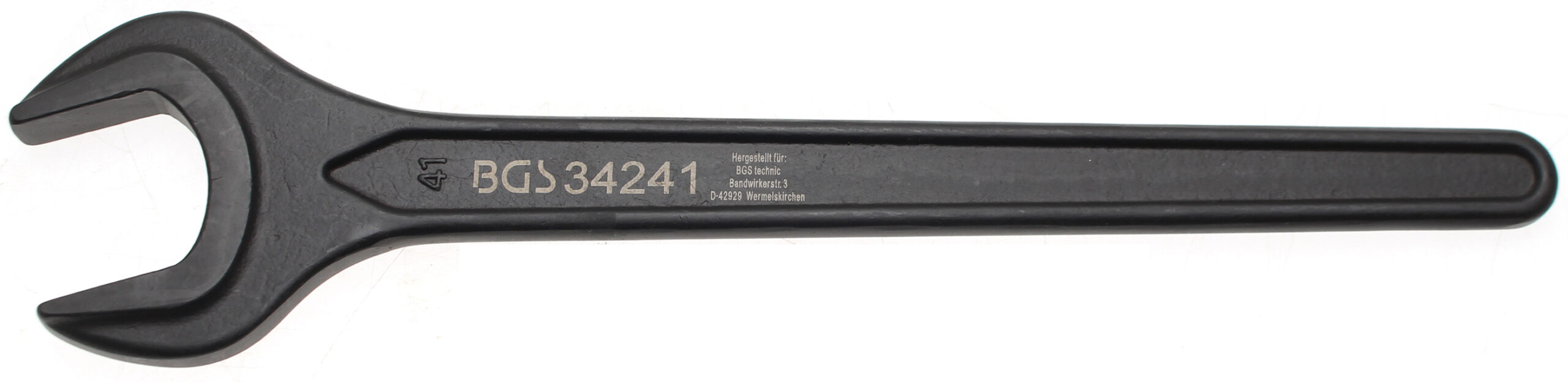 Industrie-Maulschlüssel für besonders schwere Montagen mit langem Schaft für tiefliegende Verschraubungen und hohe Drehmomente sicherer Griff durch Profilschaft warm geschmiedet Technische Daten Oberflächenvergütung Phosphatiert DIN 894 Schlüsselweite 41 mm Maulstellung 15 Kopfbreite 815 mm Bruttogewicht 590 g Material Werkzeugstahl C45 Kopfstärke 138 mm Verpackung für Wandbehang geeignet Nein Länge 3365 mm