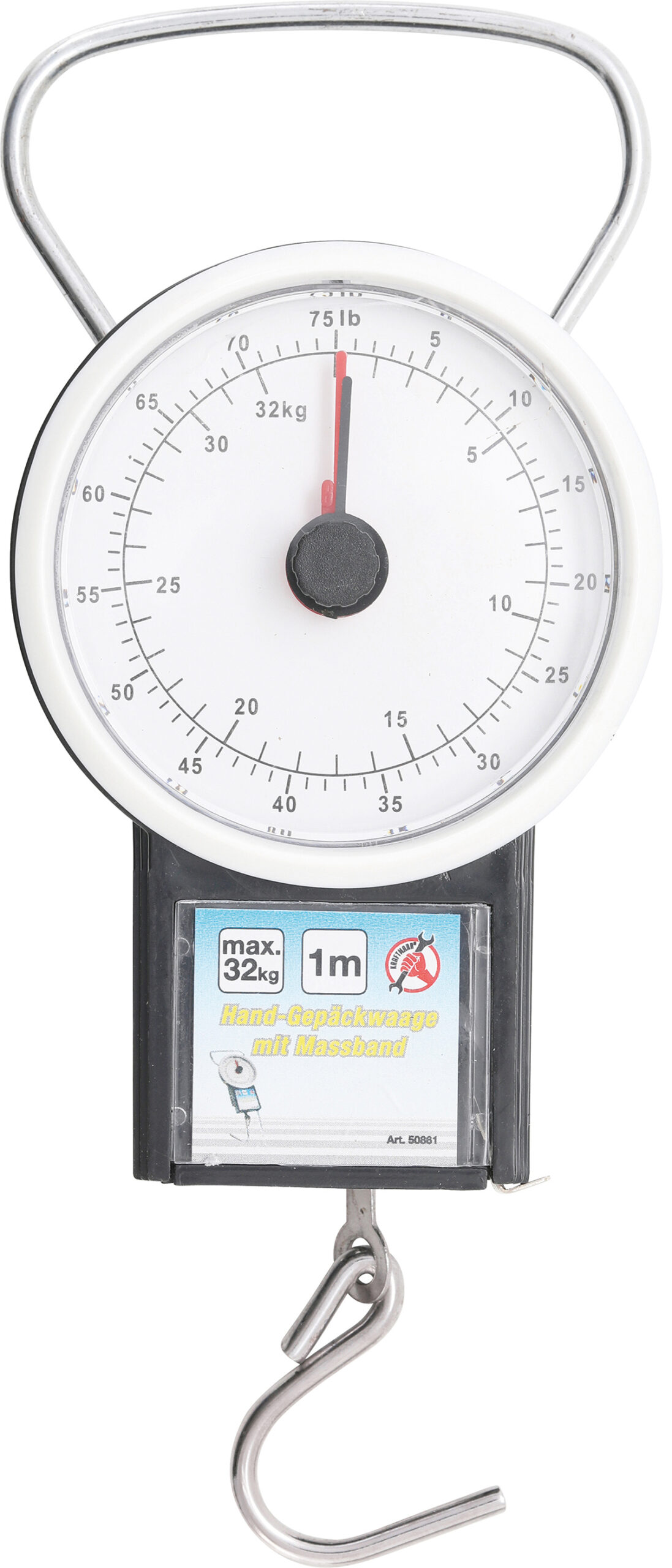 ein wertvolles Hilfsmittel auf Reisen dass sich dank stetig steigender Gepäckgebühren für Übergepäck sofort bezahlt macht Gepäckwaage mit Handgriff und Hängehaken für Gepäck Skala in kg und lb geeignet bis 32 kg 80 lb inkl. 1 m Maßband zum Vermessen des Gepäcks Technische Daten Verpackung für Wandbehang geeignet Ja Bruttogewicht 170 g