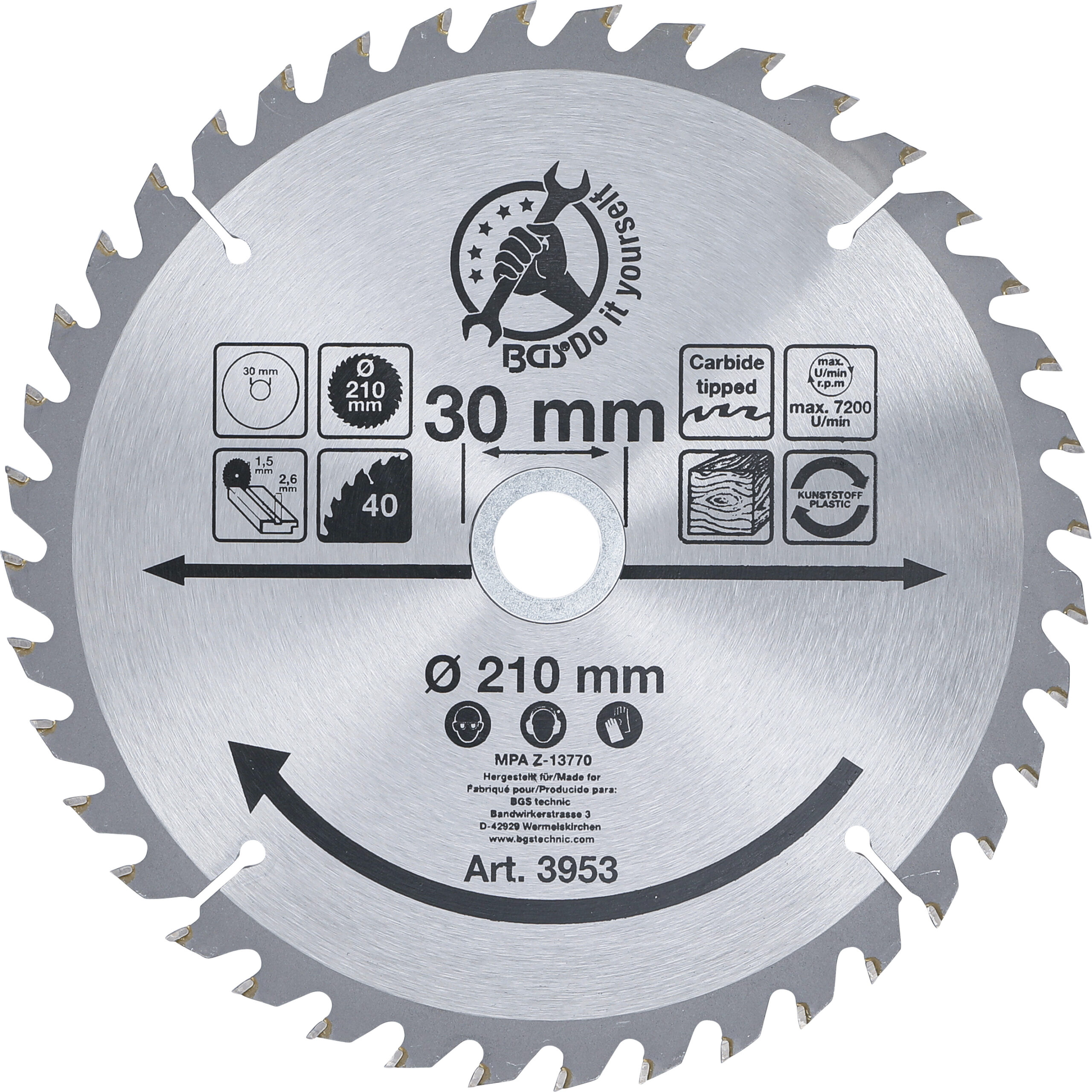 Hartmetall-Kreissägeblatt Ø 210 x 30 x 26 mm 40 Zähne