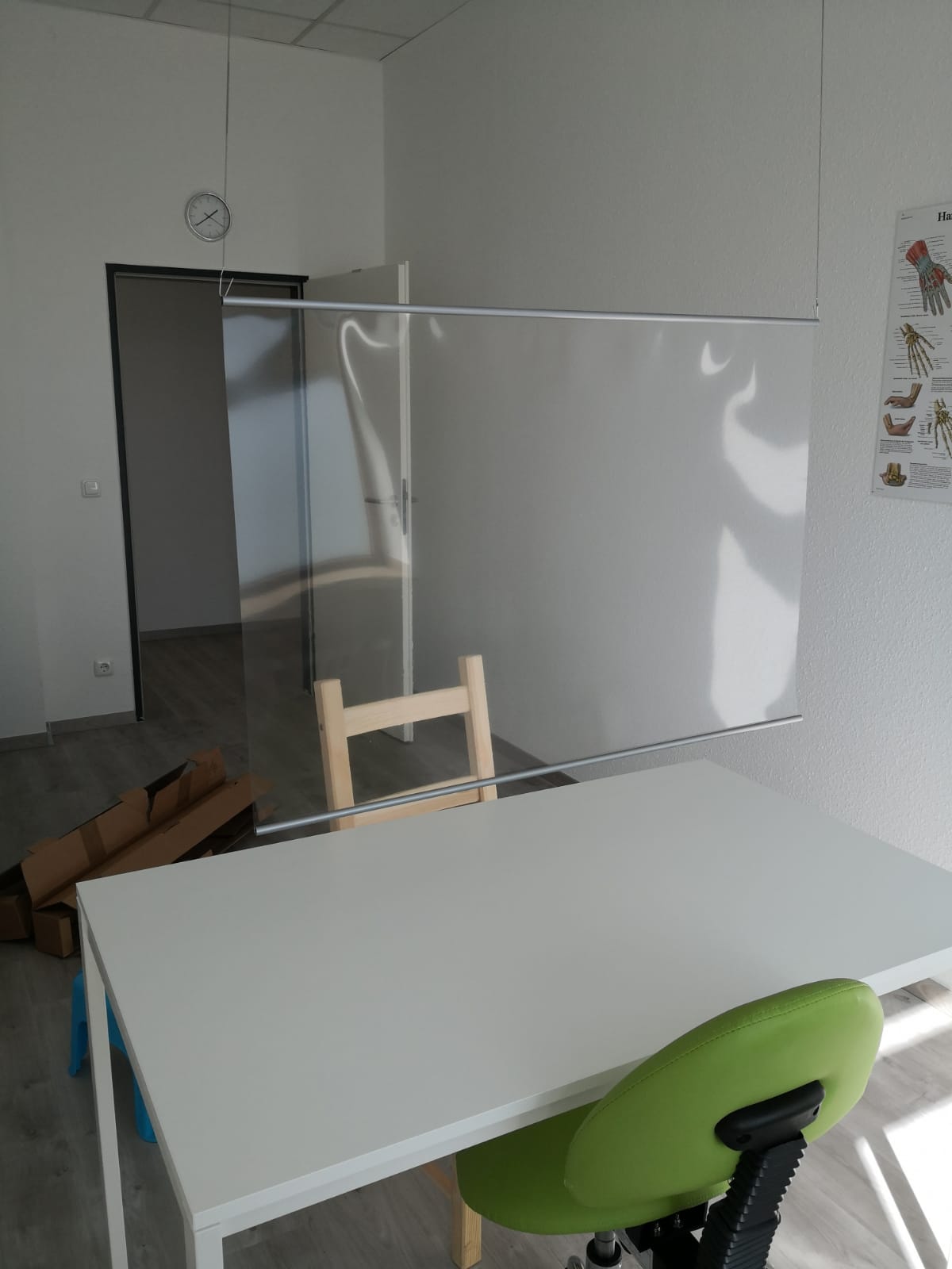 zur Reduzierung der Tröpfcheninfektion aus Hart-PVC-Folie 03 mm In drei Größen verfügbar Schmal 70 x 100 cm Breit 100 x 70 cm XXL 140 x 100 cm Beigefügtes Montagezubehör bei schmaler und breiter Version 4 Stück Spiralfederhaken Die Haken sind ausziehbar von ca. 21 150 cm. Die ausgezogene Länge ist NICHT rückgängig zu machen. 2 Stück Deckenklemmen für 2040er Rasterdecken. 2 Klebebuttons zum optionalen Spannen für unten. Beigefügtes Montagezubehör bei XXL-Version 2 Stück Deckenklemmen…