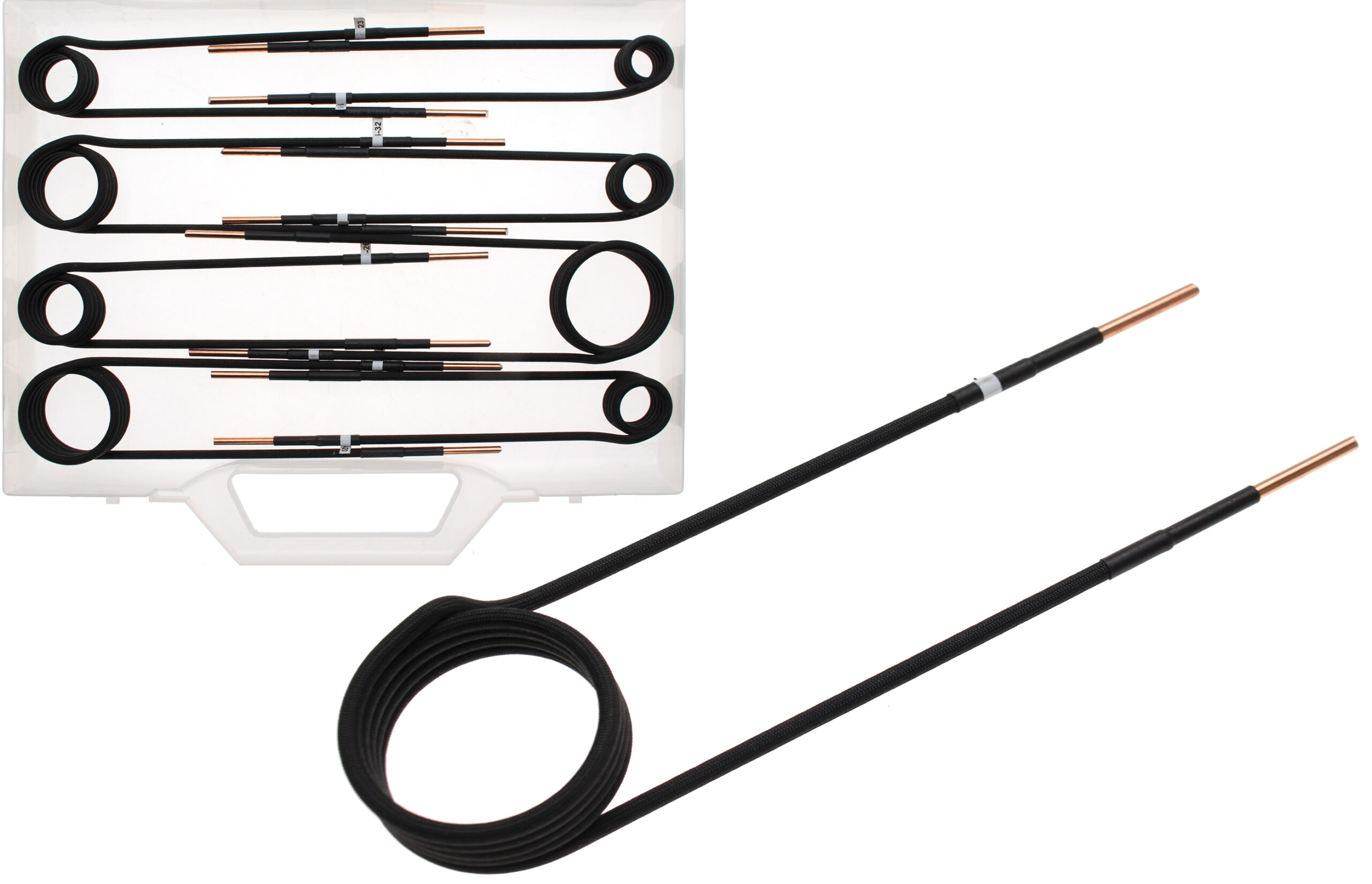 zum Erhitzen von Schrauben Muttern Wellen etc. passend für Induktionserhitzer Art. 2169 gerade Bauform Drahtdurchmesser 4 mm Spulenbreite ca. 23 mm Gesamtlänge ca. 230 mm beinhaltet Spulen mit folgenden Innendurchmessern 15 – 19 – 20 – 23 – 26 – 32 – 38 – 45 mm Technische Daten Bruttogewicht 1100 g