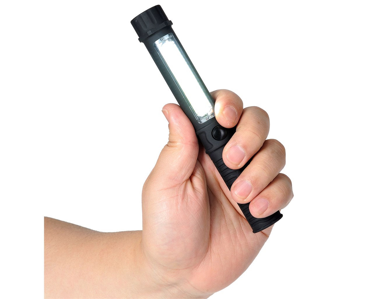 Diese praktische Taschenlampe kann in der Tasche oder am Gürtel getragen werden. Geeignet für die Weite wie auch als Punktstrahler. Haftet durch den Magneten an metallischen Oberflächen. Abmessungen 165 x 26 cm Helligkeit 150 40 Lumen Laufzeit 410 Stunden 3 Batterien inklusiv AAA Haltbar und praktisch durch Gummibeschichtung Gürtelclip für sicheren Transport Magnetisch CE zertifiziert
