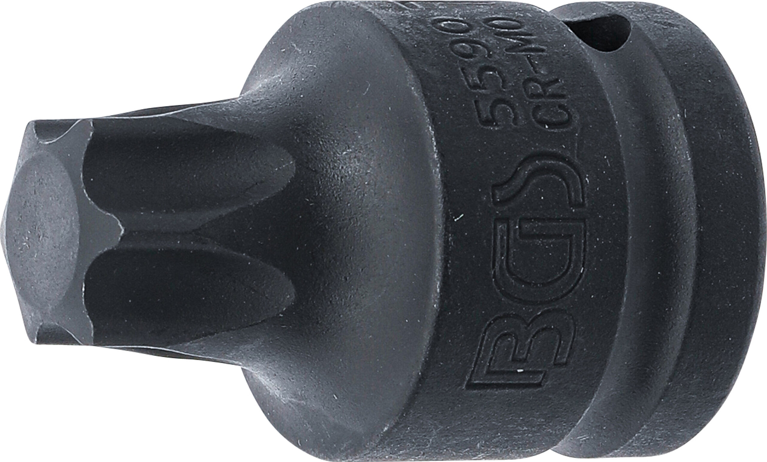 für Hand- und Schlagschrauberbetrieb geeignet mit Aufnahme für Arretierstift und Gummiring Technische Daten Abtriebsprofil T-Profil für Torx Länge 60 mm Antriebsprofilgröße metrisch 20 mm Verpackung für Wandbehang geeignet Ja Antriebsprofil Innenvierkant Antriebsprofilgröße imperial 34 Material Chrom-Molybdän-Stahl Bruttogewicht 220 g Abtriebsprofilgröße T90
