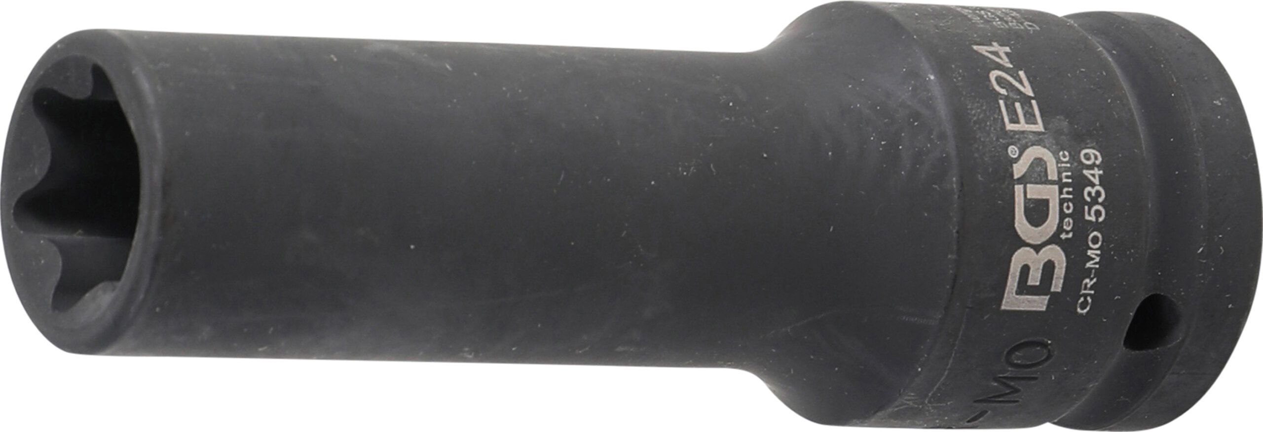 für Hand- und Schlagschrauberbetrieb geeignet mit Aufnahme für Arretierstift und Gummiring zur Montage der Radflanschschrauben M18 x 15 mm zum Bremsscheibenwechsel an Nfz Technische Daten Antriebsprofil Innenvierkant Schlüsselweite E24 Abtriebsprofil E-Profil Länge 110 mm Antriebsprofilgröße metrisch 20 mm Antriebsprofilgröße imperial 34 Material Chrom-Molybdän-Stahl Bruttogewicht 540 g