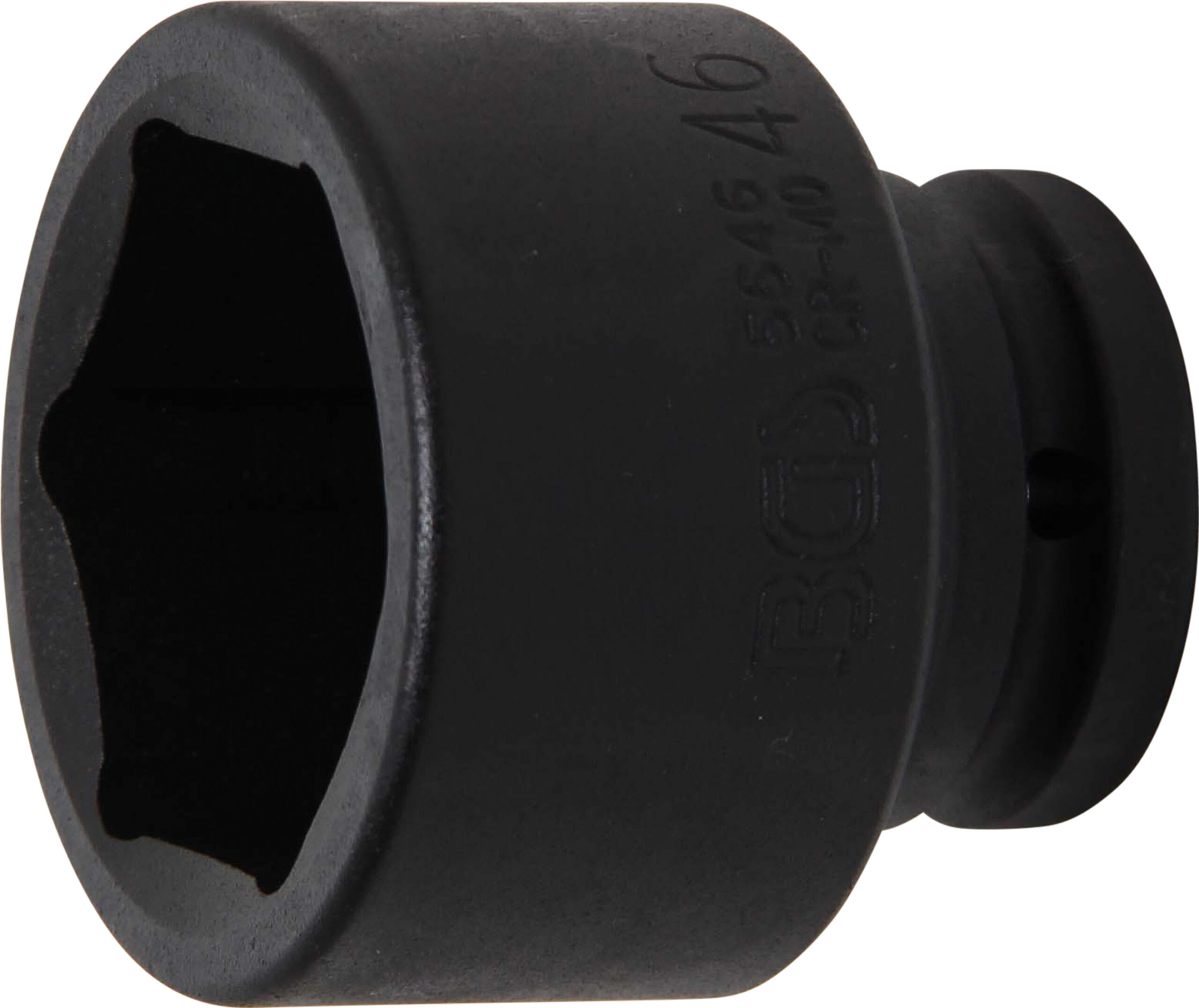 für Hand- und Schlagschrauberbetrieb geeignet mit Aufnahme für Arretierstift und Gummiring Technische Daten Schlüsselweite 46 mm Antriebsprofilgröße metrisch 20 mm Abtriebsprofil Sechskant Oberflächenvergütung Phosphatiert Bruttogewicht 750 g Antriebsprofilgröße imperial 34 Material Chrom-Molybdän-Stahl Antriebsprofil Innenvierkant