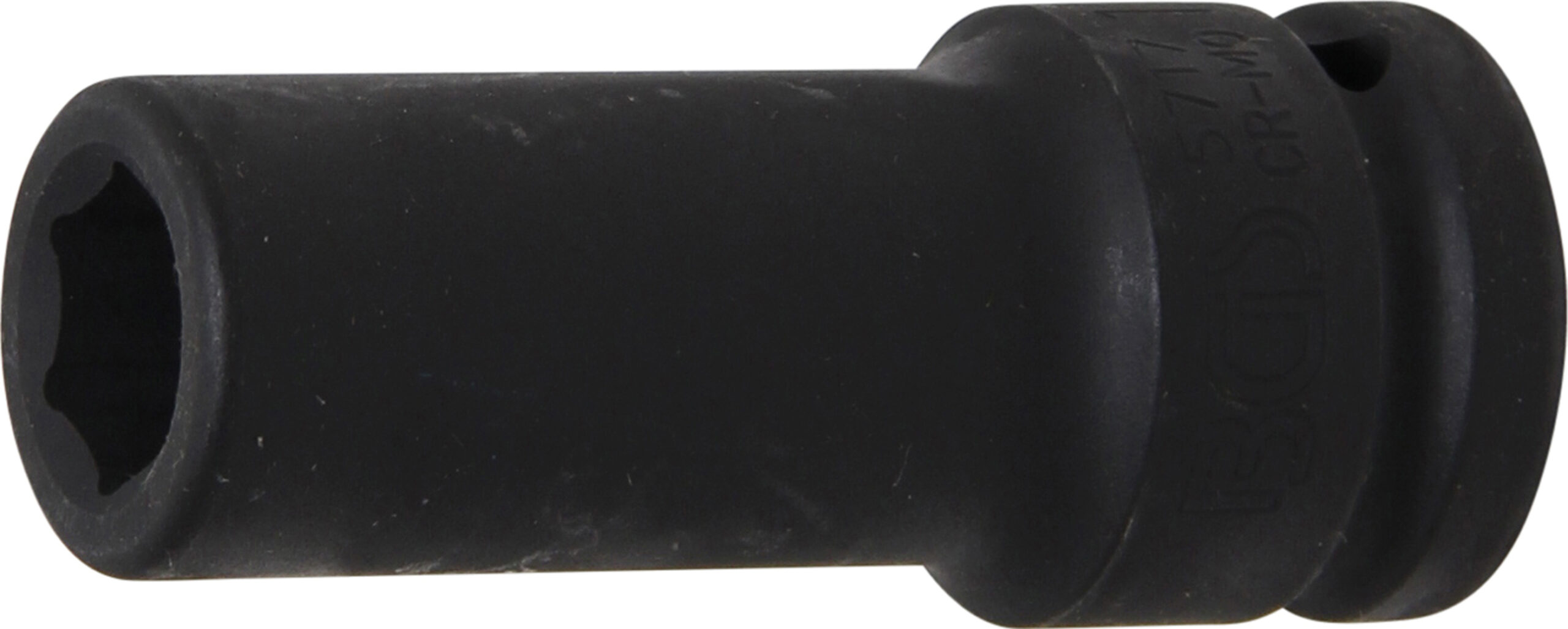für Hand- und Schlagschrauberbetrieb geeignet mit Aufnahme für Arretierstift und Gummiring Technische Daten Antriebsprofilgröße imperial 34 Bruttogewicht 420 g Material Chrom-Molybdän-Stahl Schlüsselweite 17 mm Oberflächenvergütung Phosphatiert Antriebsprofil Innenvierkant Abtriebsprofil Sechskant Länge 90 mm Antriebsprofilgröße metrisch 20 mm