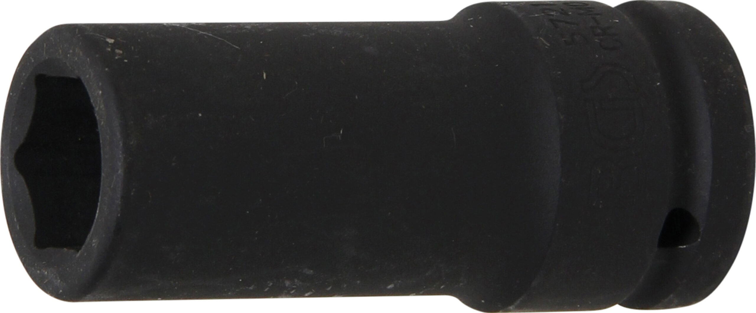 für Hand- und Schlagschrauberbetrieb geeignet mit Aufnahme für Arretierstift und Gummiring Technische Daten Abtriebsprofil Sechskant Bruttogewicht 490 g Material Chrom-Molybdän-Stahl Antriebsprofil Innenvierkant Oberflächenvergütung Phosphatiert Antriebsprofilgröße metrisch 20 mm Schlüsselweite 21 mm Antriebsprofilgröße imperial 34 Länge 90 mm