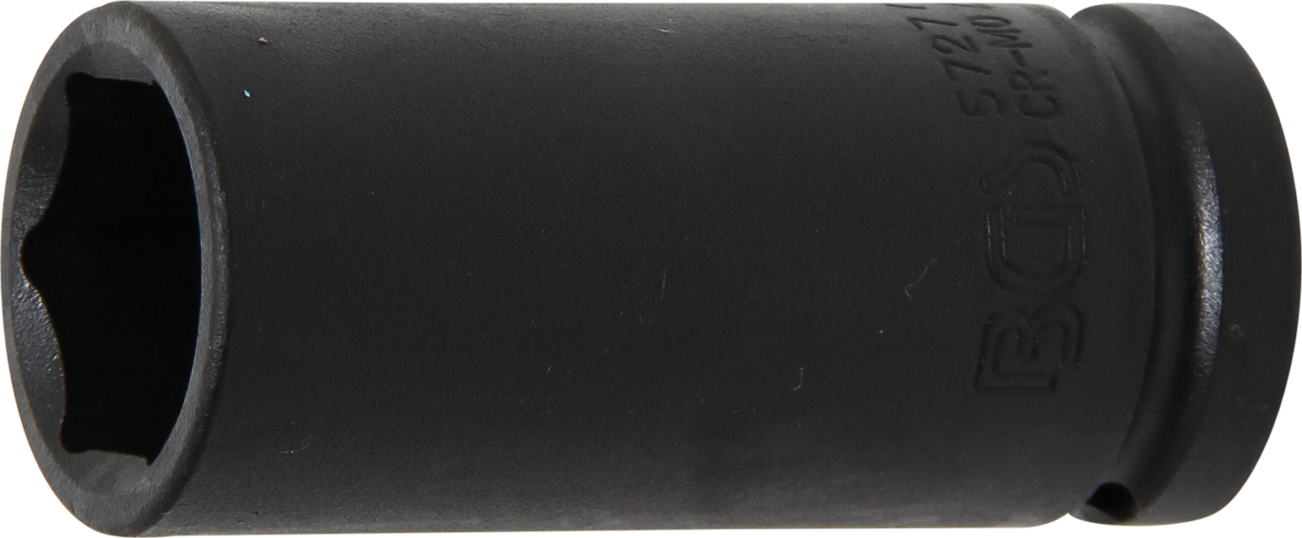 für Hand- und Schlagschrauberbetrieb geeignet mit Aufnahme für Arretierstift und Gummiring Technische Daten Bruttogewicht 500 g Oberflächenvergütung Phosphatiert Antriebsprofilgröße imperial 34 Länge 90 mm Material Chrom-Molybdän-Stahl Schlüsselweite 27 mm Abtriebsprofil Sechskant Antriebsprofil Innenvierkant Antriebsprofilgröße metrisch 20 mm
