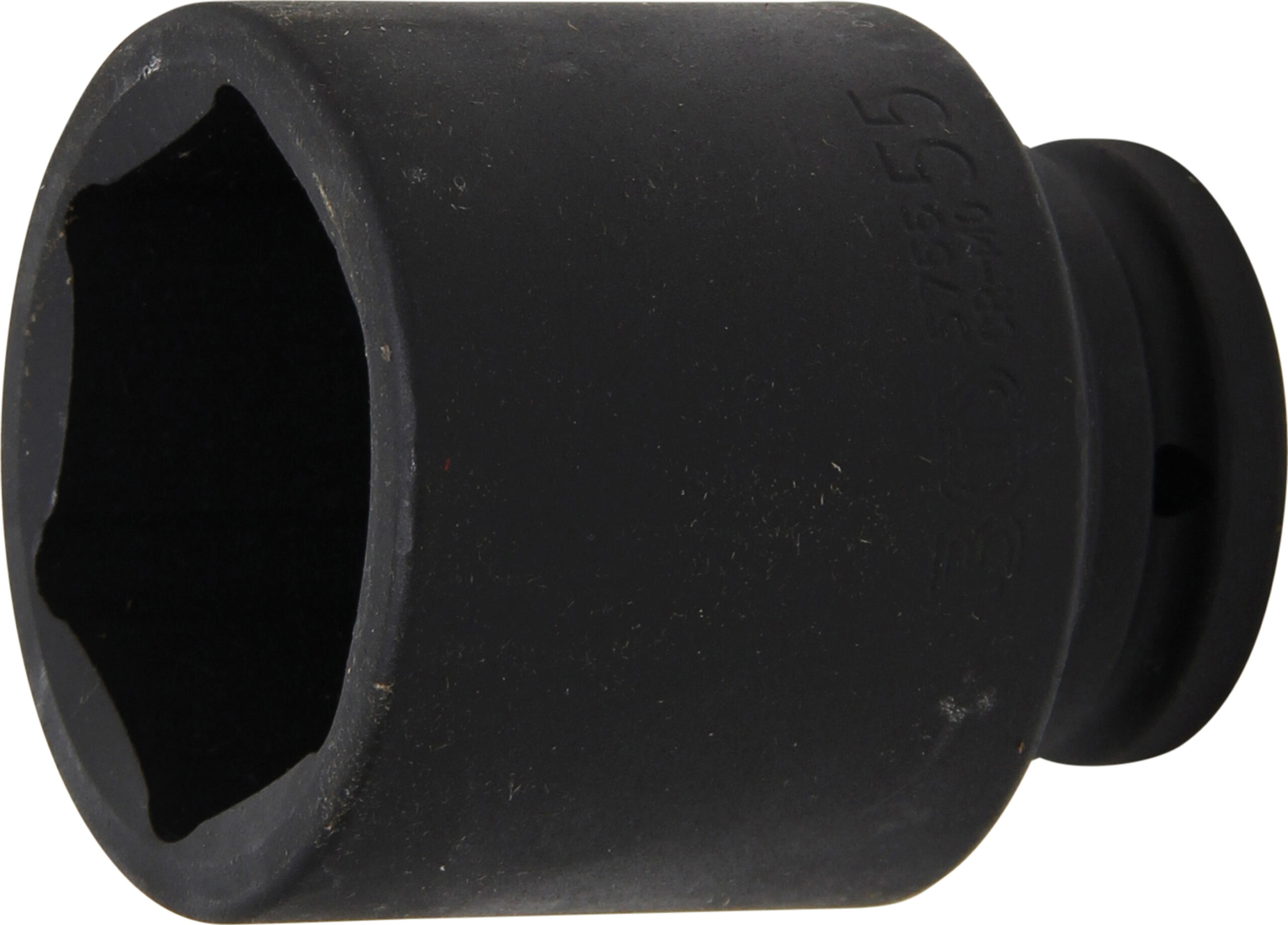 für Hand- und Schlagschrauberbetrieb geeignet mit Aufnahme für Arretierstift und Gummiring Technische Daten Abtriebsprofil Sechskant Bruttogewicht 1680 g Antriebsprofilgröße metrisch 20 mm Antriebsprofilgröße imperial 34 Oberflächenvergütung Phosphatiert Antriebsprofil Innenvierkant Schlüsselweite 55 mm Länge ca. 100 mm Material Chrom-Molybdän-Stahl