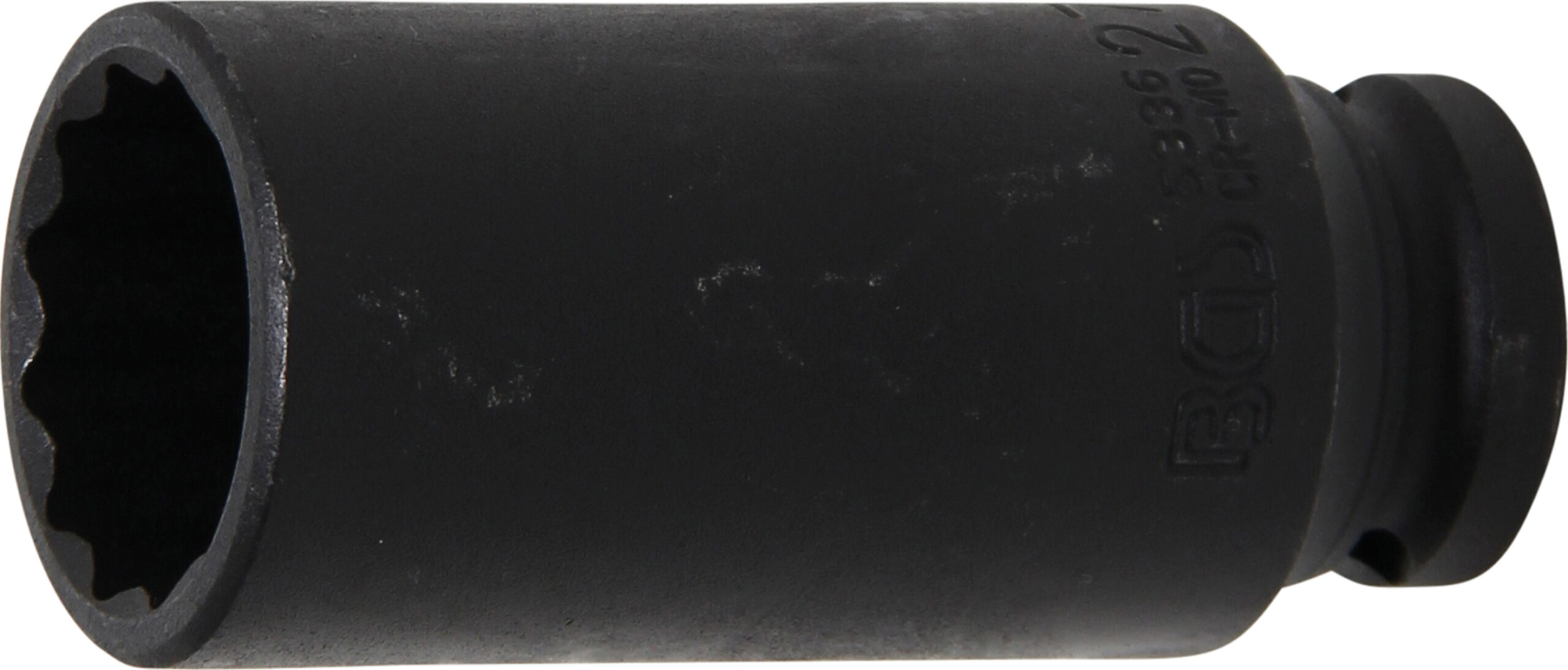 für Hand- und Schlagschrauberbetrieb geeignet mit Aufnahme für Arretierstift und Gummiring speziell für Antriebswellen Technische Daten Bruttogewicht 420 g Schlüsselweite 27 mm Antriebsprofilgröße metrisch 125 mm Antriebsprofil Innenvierkant Antriebsprofilgröße imperial 12 Material Chrom-Molybdän-Stahl Abtriebsprofil Zwölfkant