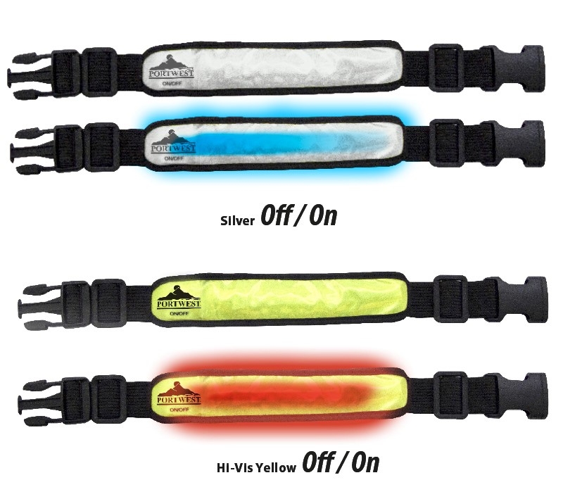 Verstellbares Armband mit einem reflektierenden Streifen für einen kleinen leichten und bequemen Schutz. Der Streifen leuchtet wenn man den Knopf drückt und gibt ein rotes Licht ab für zusätzliche Sichtbarkeit. Konstante und pulsierende Einstellungen. Die CR2032 Batterie 3V hält 80 Stunden. Normen EN 13356 CE RoHS VE 20 Stück Preis pro Stück Features CE zertifiziert CR2033 Batterie 3V Hell kompakt leicht Leuchtdauer 80 Stunden Panel leuchtet auf Knopfdruck Verstellbare Träger