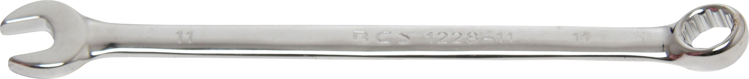 kalt geschmiedet gehärtet hochglanz verchromt Ringende 15 abgewinkelt Abtriebsprofil Ringseite Zwölfkant extra lang Technische Daten Bruttogewicht 60 g Schlüsselweite 1 11 mm Material Chrom-Vanadium-Stahl Länge 180 mm Schlüsselweite 2 11 mm