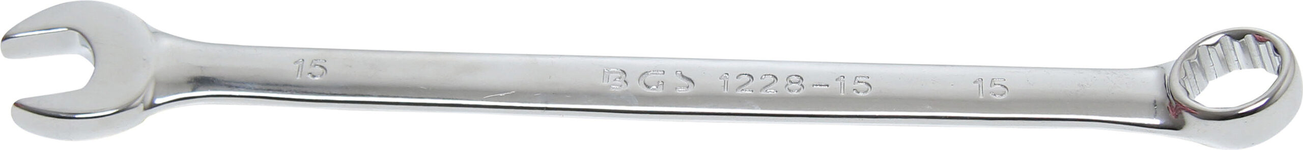 kalt geschmiedet gehärtet hochglanz verchromt Ringende 15 abgewinkelt Abtriebsprofil Ringseite Zwölfkant extra lang Technische Daten Schlüsselweite 2 15 mm Schlüsselweite 1 15 mm Material Chrom-Vanadium-Stahl Bruttogewicht 130 g Länge 230 mm
