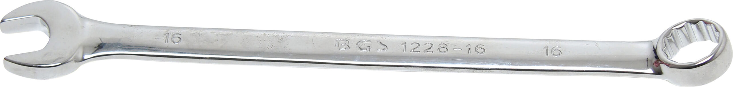 kalt geschmiedet gehärtet hochglanz verchromt Ringende 15 abgewinkelt Abtriebsprofil Ringseite Zwölfkant extra lang Technische Daten Schlüsselweite 1 16 mm Länge 240 mm Schlüsselweite 2 16 mm Bruttogewicht 140 g Material Chrom-Vanadium-Stahl