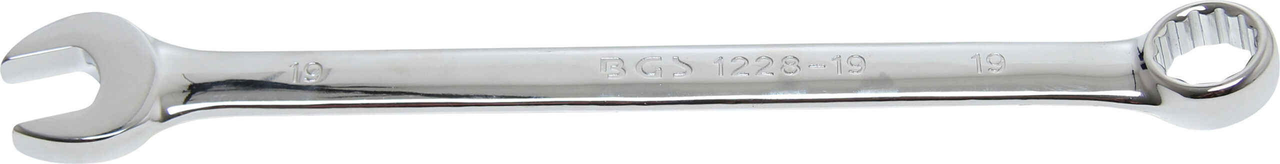 kalt geschmiedet gehärtet hochglanz verchromt Ringende 15 abgewinkelt Abtriebsprofil Ringseite Zwölfkant extra lang Technische Daten Bruttogewicht 240 g Material Chrom-Vanadium-Stahl Schlüsselweite 2 19 mm Länge 280 mm Schlüsselweite 1 19 mm