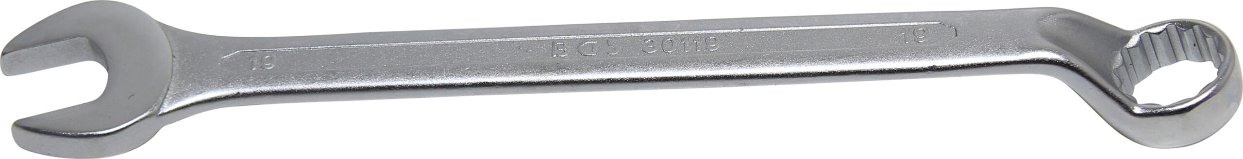 kalt geschmiedet matt verchromt Ringende tief gekröpft Abtriebsprofil Ringseite Zwölfkant Technische Daten Länge 255 mm Bruttogewicht 200 g Schlüsselweite 2 19 mm Material Chrom-Vanadium-Stahl KopfKöpfe gekröpft Ja Schlüsselweite 1 19 mm