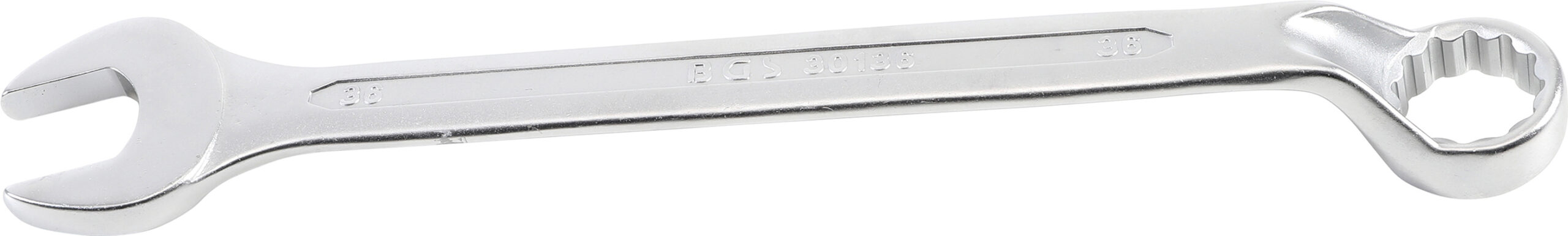 kalt geschmiedet matt verchromt Ringende tief gekröpft Abtriebsprofil Ringseite Zwölfkant Technische Daten Material Chrom-Vanadium-Stahl Bruttogewicht 1120 g Länge 450 mm Schlüsselweite 36 mm Verpackung für Wandbehang geeignet Ja