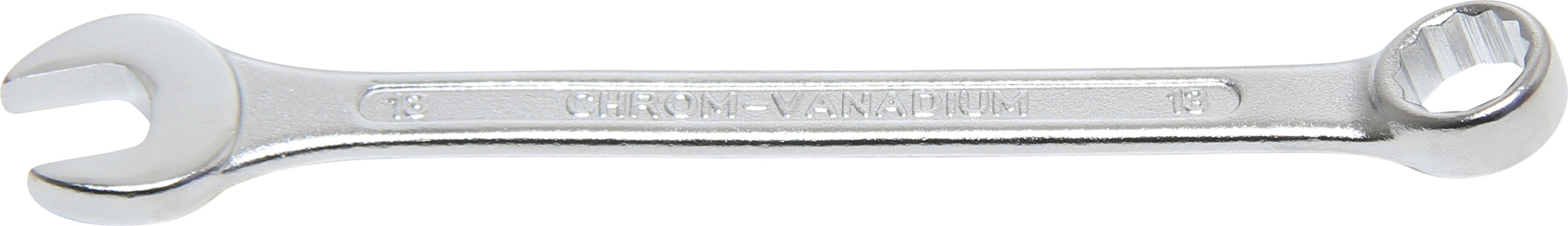 warm geschmiedet verchromt Köpfe glanzpoliert Ringende 15 abgewinkelt Abtriebsprofil Ringseite Zwölfkant Technische Daten Schlüsselweite 1 13 mm Material Chrom-Vanadium-Stahl Bruttogewicht 80 g Schlüsselweite 2 13 mm