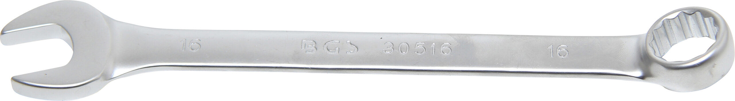 kalt geschmiedet seidenmatt verchromt Ringende 15 abgewinkelt Abtriebsprofil Ringseite Zwölfkant Technische Daten Oberflächenvergütung Verchromt matt Schlüsselweite 1 16 mm Bruttogewicht 130 g Material Chrom-Vanadium-Stahl Schlüsselweite 2 16 mm
