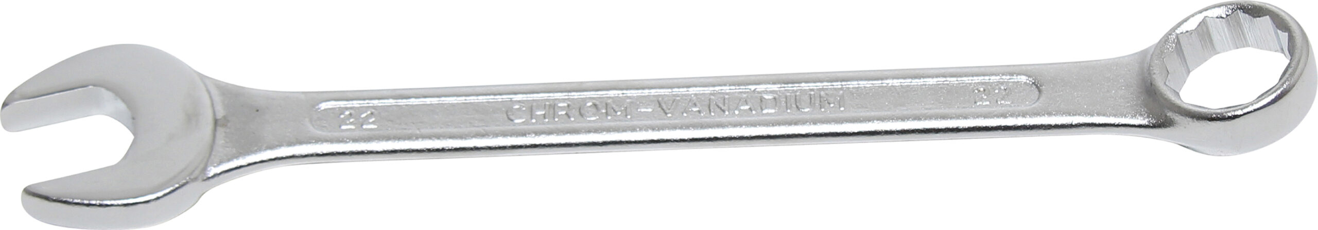 warm geschmiedet verchromt Köpfe glanzpoliert Ringende 15 abgewinkelt Abtriebsprofil Ringseite Zwölfkant Technische Daten Bruttogewicht 210 g Material Chrom-Vanadium-Stahl Schlüsselweite 1 22 mm Schlüsselweite 2 22 mm