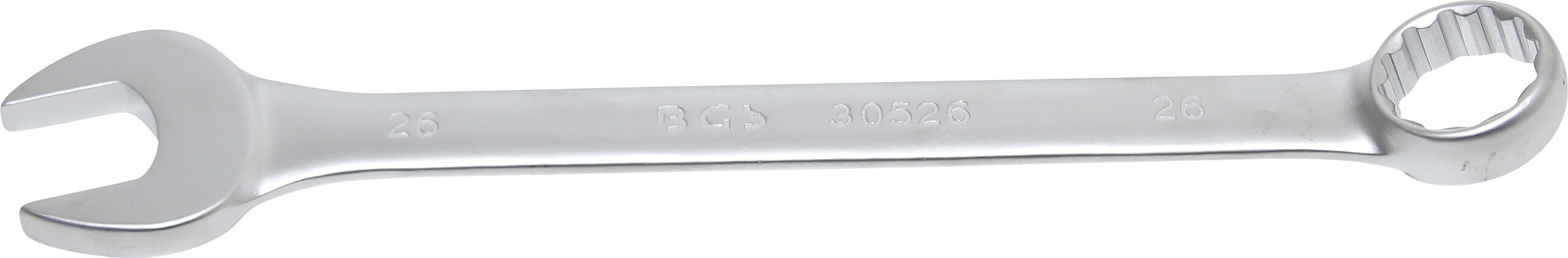 kalt geschmiedet seidenmatt verchromt Ringende 15 abgewinkelt Abtriebsprofil Ringseite Zwölfkant Technische Daten Bruttogewicht 370 g Schlüsselweite 1 26 mm Material Chrom-Vanadium-Stahl Schlüsselweite 2 26 mm Oberflächenvergütung Verchromt matt