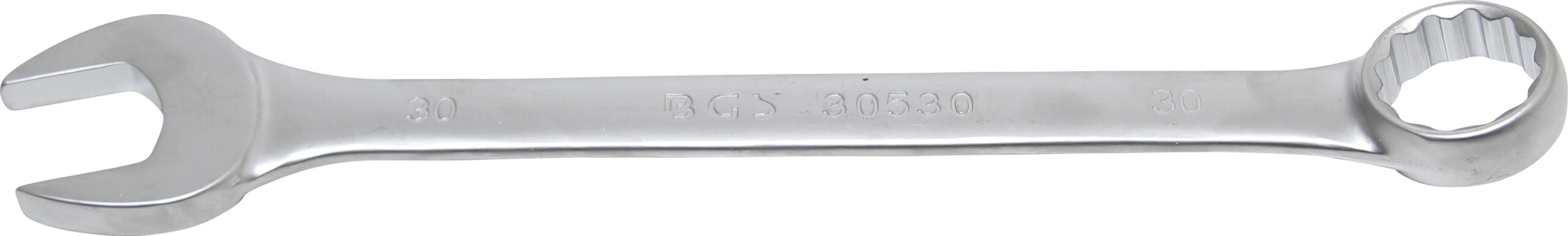 kalt geschmiedet seidenmatt verchromt Ringende 15 abgewinkelt Abtriebsprofil Ringseite Zwölfkant Technische Daten Schlüsselweite 1 30 mm Schlüsselweite 2 30 mm Oberflächenvergütung Verchromt matt Bruttogewicht 510 g Material Chrom-Vanadium-Stahl
