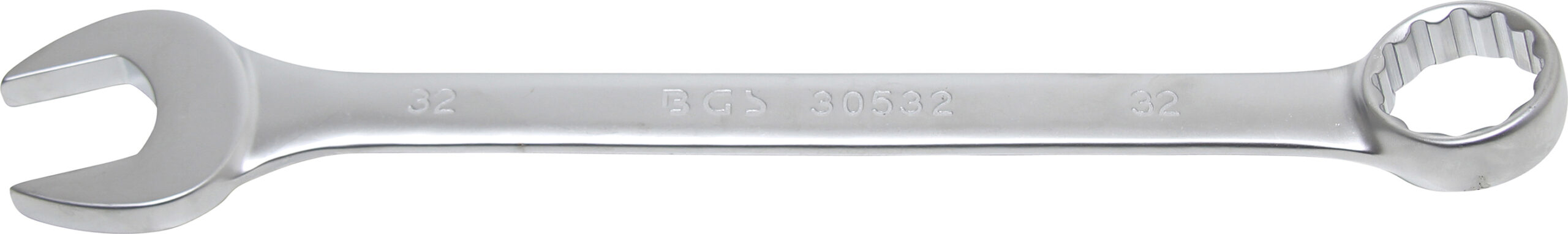 kalt geschmiedet seidenmatt verchromt Ringende 15 abgewinkelt Abtriebsprofil Ringseite Zwölfkant Technische Daten Schlüsselweite 1 32 mm Oberflächenvergütung Verchromt matt Bruttogewicht 540 g Material Chrom-Vanadium-Stahl Schlüsselweite 2 32 mm