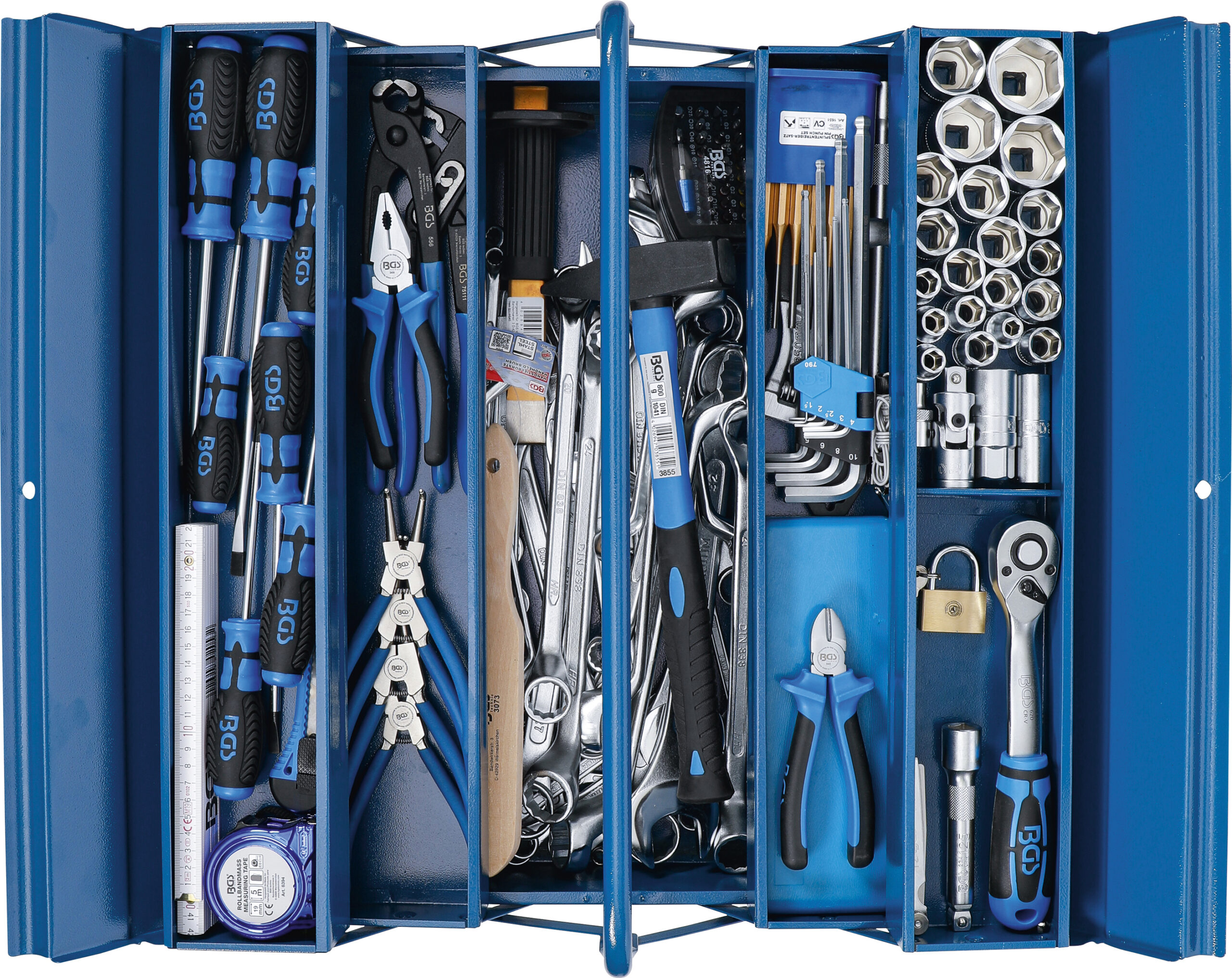 Die Kiste hält was aus Unser Profi-Werkzeugset in der klassischen Werkzeugbox aus massivem Blech. Alles sofort zur Hand Box aus Stahlblech gefertigt extra stabile Ausführung Lieferumfang Seitenschneider 165 mm Kombinationszange 160 mm Sprengringzangen-Satz 175 mm 4-tlg. Rabitzzange 250 mm Winkelschlüssel-Satz extra lang Innensechskant 15 – 10 mm 9-tlg. Rollgabelschlüssel Kunststoff-Softgriff 250 mm Karosserie-Meißel 235 mm Splintentreiber-Satz 150 mm 3 – 8 mm 6-tlg. Digital-…