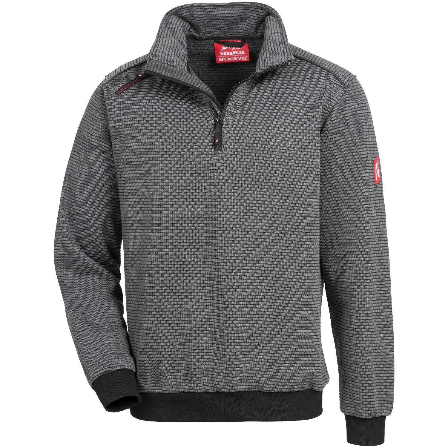 Oberstoff Polyester Verfügbare Farben schwarz marine grau weiß grün braun Größen XS-5XL Regular fit NITRAS MOTION TEX PLUS Pullover 400 gqm atmungsaktiv besonders wärmend dank dichtem Material angenehmer Tragekomfort dank aufgerauter und besonders weicher Innenseite Strickbund an Ärmeln und Taille farblich abgestimmter YKK-Reißverschluss bis zur Brust mit Windstopper innen Kinnschutz Gummibund an Ärmeln und Taille Reflexbiesen vorne und hinten an der S…