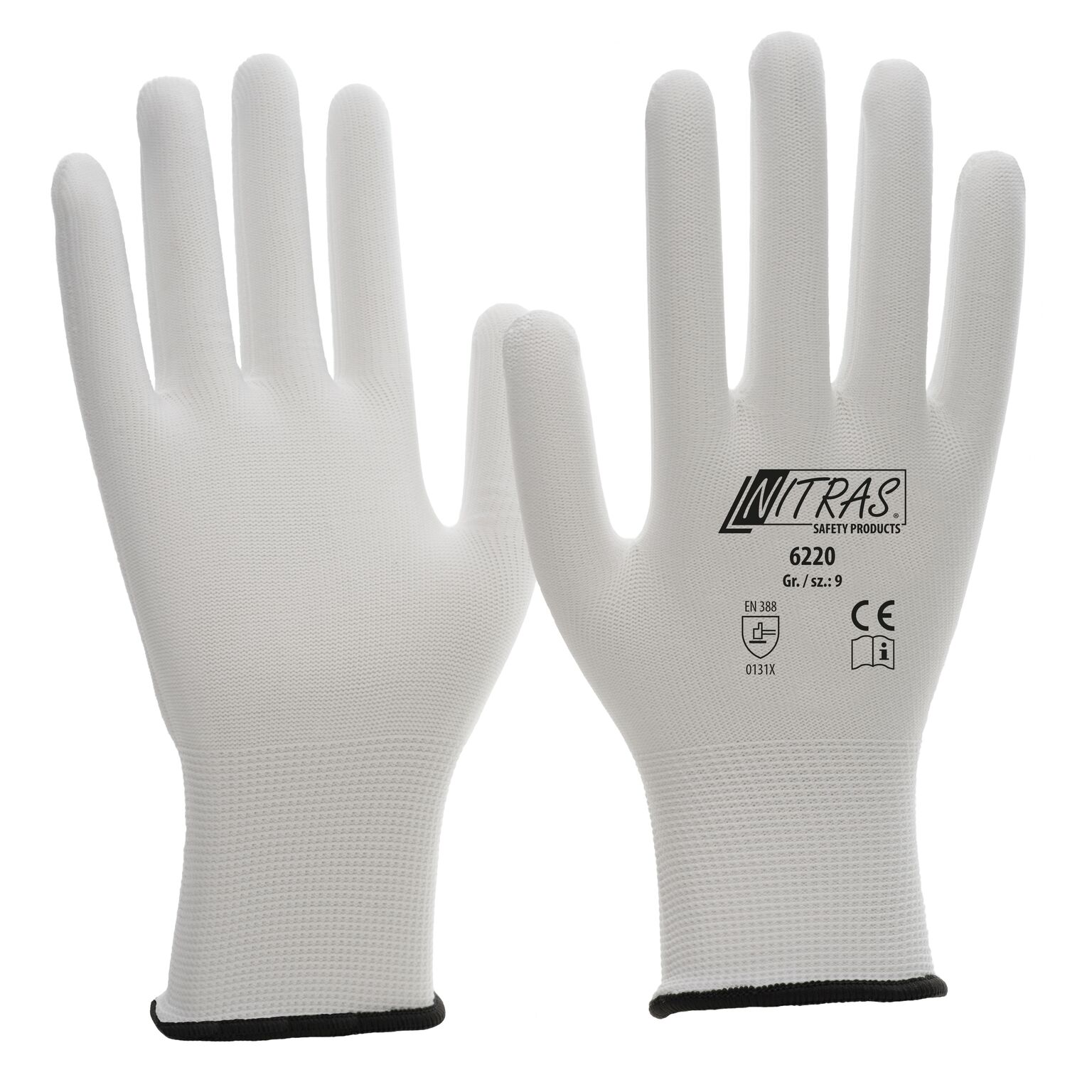 Material Nylon weiß Größen 6 7 8 9 10 Zertifizierung EN 388 NITRAS Nylonhandschuhe weiß ohne Beschichtung Strickbund EN 388 0131