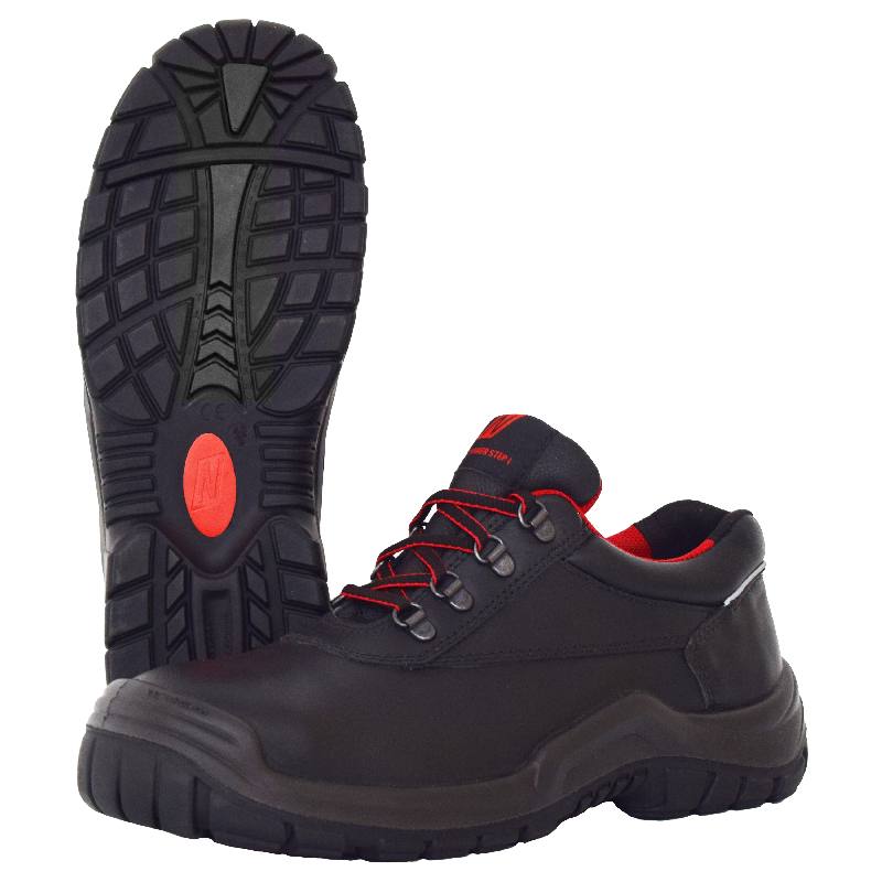MaterialVollleder schwarz SohlePU Nitril schwarz Größen36-50 ZertifizierungEN ISO 20345 NITRAS POWER STEP I S3 HRO SRC Sicherheitshalbschuhe strapazierfähiges Vollleder schwarz widerstandsfähige PU Nitril-Laufsohle schwarz Zehenkappe aus Stahl durchtrittsichere Zwischensohle aus Stahl hochwertige Einlegesohle ergonomisch geformt ansprechendes Design abgeflachte Ferse für eine natürliche Abrollbewegung bestmögliche Rutschhemmung SRC…