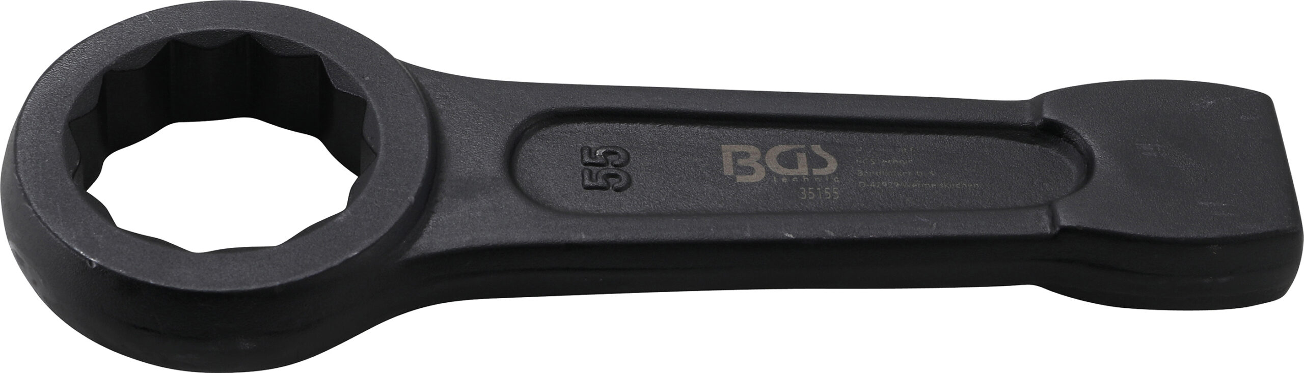 schwere Ausführung warm geschmiedet Technische Daten Material Chrom-Vanadium-Stahl Länge 270 mm Schlüsselweite 1 55 mm Bruttogewicht 2040 g Verpackung für Wandbehang geeignet Ja Oberflächenvergütung Brüniert schwarz Abtriebsprofil Zwölfkant DIN 7444