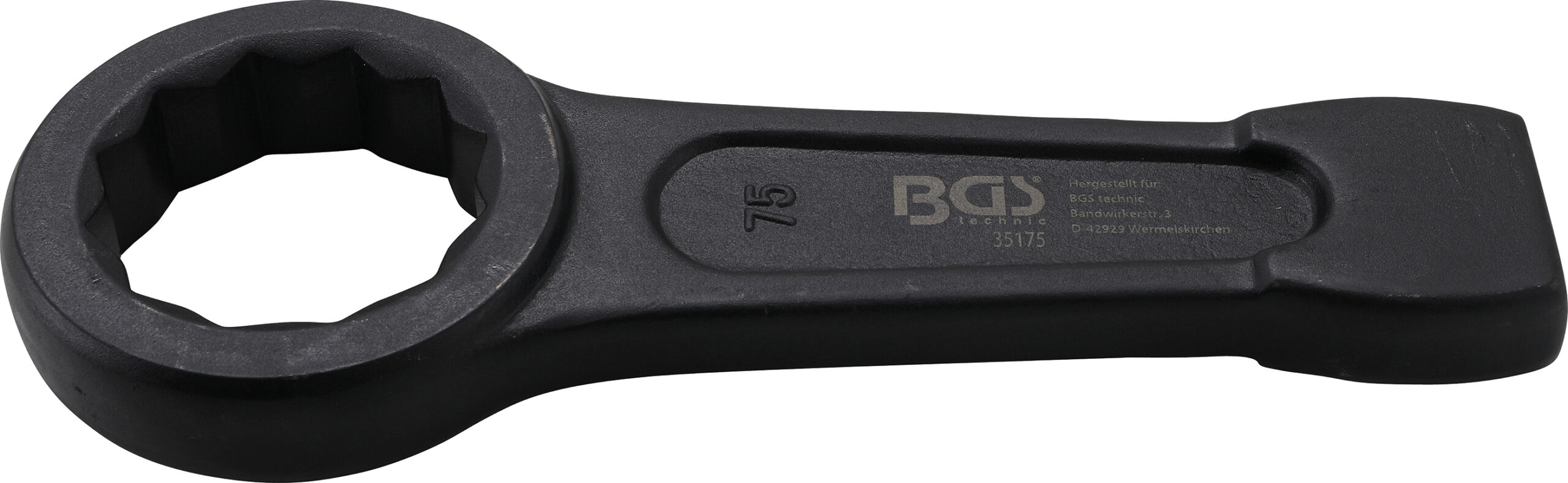schwere Ausführung warm geschmiedet DIN 7444 Schlüsselweite 75 mm Abtriebsprofil Zwölfkant Gesamtlänge 330 mm Material Chrom-Vanadium-Stahl Oberflächenvergütung brüniert schwarz Technische Daten Länge 300 mm Abtriebsprofil Zwölfkant Bruttogewicht 4120 g Material Chrom-Vanadium-Stahl Schlüsselweite 1 75 mm DIN 7444 Oberflächenvergütung Brüniert schwarz Verpackung für Wandbehang geeignet Ja