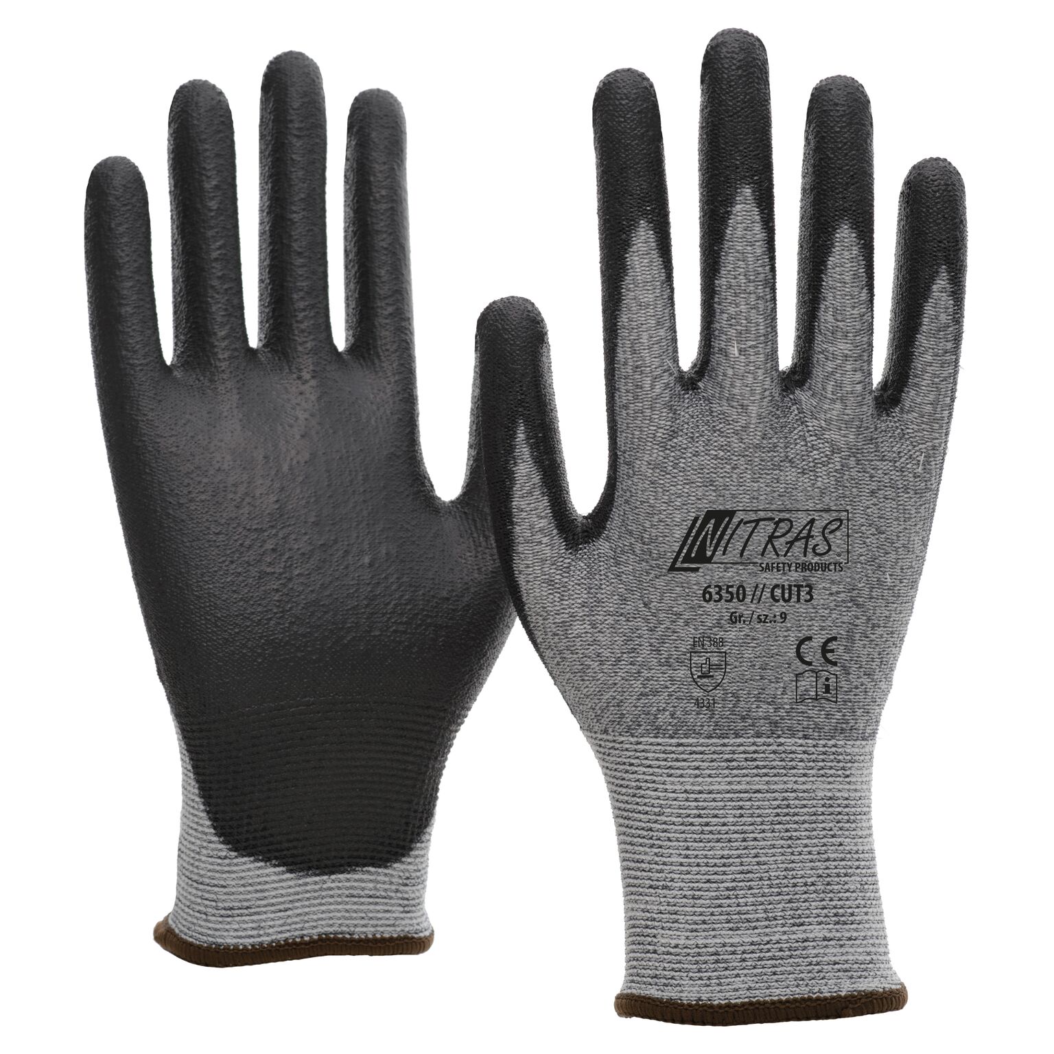 Material Spezialgarn grau Beschichtung PU schwarz Größen 6 7 8 9 10 11 Zertifizierung EN 388 NITRAS CUT3 Schnittschutzhandschuhe grau PU-Beschichtung teilbeschichtet auf Innenhand und Fingerkuppen schwarz Strickbund hoher Schnittschutz höchster Tragekomfort Spezialgarn EN 388 4331