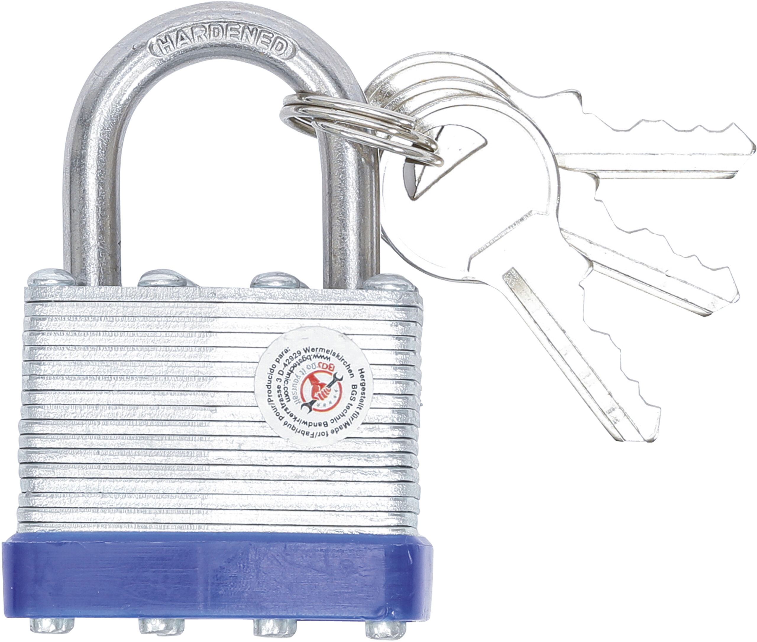 extra gesichert durch Lamellen-Aufbau gehärteter Bügel mit 3 Schlüsseln Technische Daten Bruttogewicht 200 g Verpackung für Wandbehang geeignet Ja Bügelstärke 5 mm