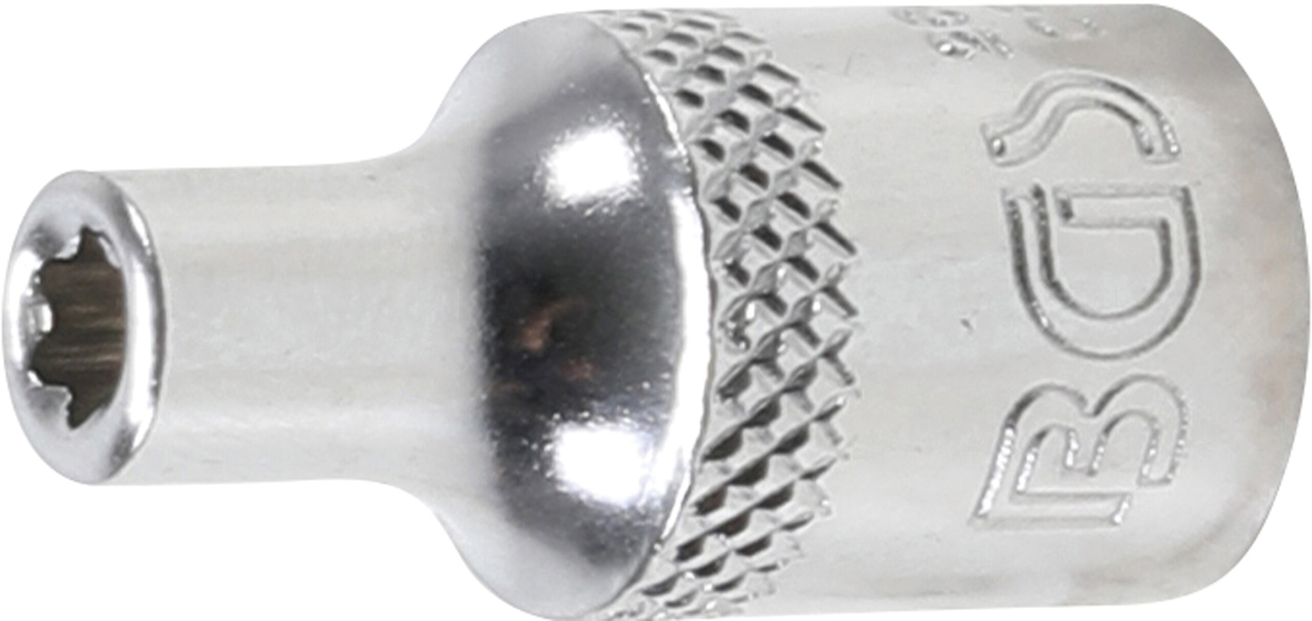 mit Rändelung Technische Daten Material Chrom-Vanadium-Stahl Oberflächenvergütung Verchromt poliert Antriebsprofil Innenvierkant Bruttogewicht 20 g Schlüsselweite E4 Antriebsprofilgröße metrisch 63 mm Antriebsprofilgröße imperial 14 Abtriebsprofil E-Profil